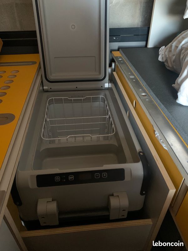 Il est équipé d'une glacière à compresseur, d'un réchaud à gaz.
