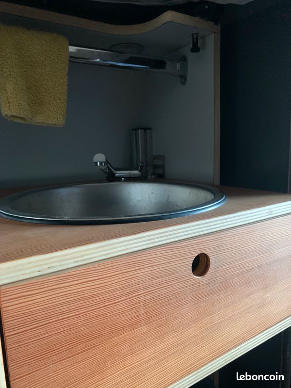 Nous vendons ce kit d'aménagement de fabrication allemande facilement insérable dans un fourgon ( le nôtre est un Crafter VW) et peut être arrimé par une seule personne. On l’installe en quelques minutes, on le verrouille, et c’est parti pour l’aventure !