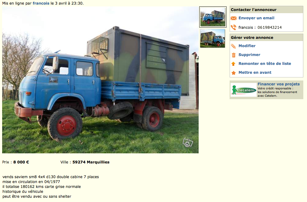 - ↳ Annonces de véhicules 4x4 (vans et camions) et pièces détachées aussi.