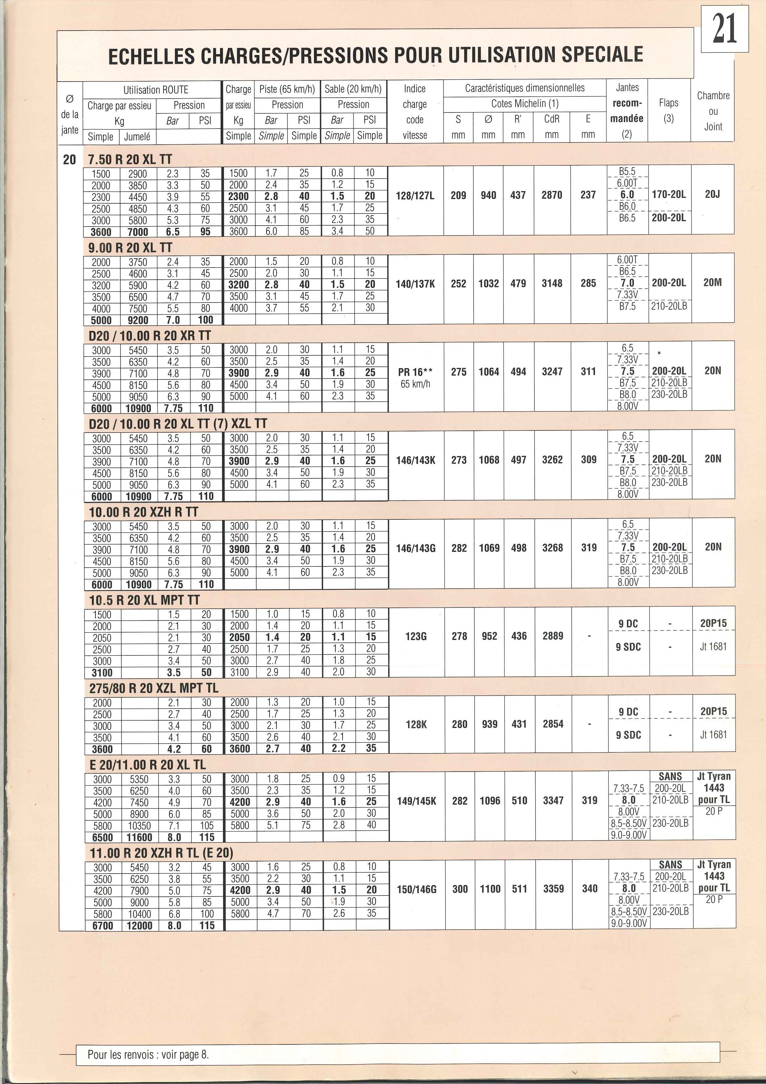 - sur routes mauvais goudron, ridées, cabossées (disons Maroc et Mauritanie par ex) 2,8 B à l'AV et 3 B à l'AR. Sur ces routes la vitesse est souvent 70/80 km/h maxi. Cette baisse de pression se sent à la conduite, le camion est un peu moins stable mais le confort est bien mieux.