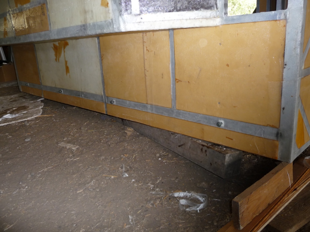 A l’intérieur, je pose contre la mousse et la structure une couche de liège de 4-5 mm + un contreplaqué en peuplier de 5 mm, le tout riveté sur la structure en alu. Cela permet d’éviter les ponts thermiques dus à la structure alu et d’améliorer l’isolation phonique.