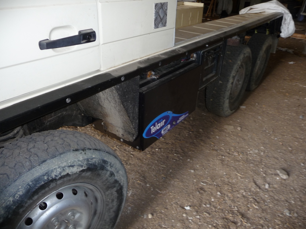 Concernant la rigidité de l'ensemble, je n'ai pas de doutes, la conception du Pinz avec sa poutre très rigide et la caisse boulonnée dessus fait que la caisse ne bouge pas quelles que soient les circonstances, j'ai testé en tout terrain (2 roues sur 6 au sol) il n'y à aucune déformation.
