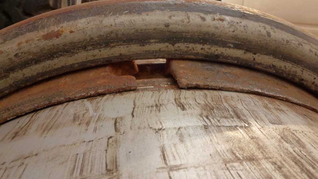 on voit ici ce qui pose problème dans ce type de montage: le cercle possède une longue nervure qui prend la place de la surface cylindrique ou devrait reposer le joint cornière et donc celui ci ne peut réaliser une étancheité puisqu'il y a une grande zone de fuite juste en dessous entre le cercle et la jante.