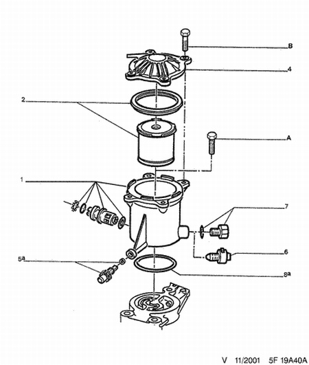ancien filtre réchauffé bosch, en 9, en haut à droite, c'est le kit thermostat pour régulé la T° de liquide de refroidissement