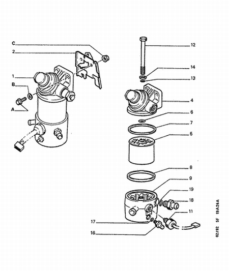 Pour le diag, j'ai dévissé la canalisation de sortie du filtre, pompé sur la pompe d'amorcage, avec peu gas oil qui sortait.en suite j'ai démonté la canalisation d'entrée, repompé, et la j'avais un bon débit de carburant.Démontage du filtre, avec du liquide épais et blanc qui en sortait(tiens, de la parafine), remplacement par un porte filtre et un filtre de provenance peugeot purflux de 309( on en trouve partout, moins cher que celui d'origine) et la plus de problème.