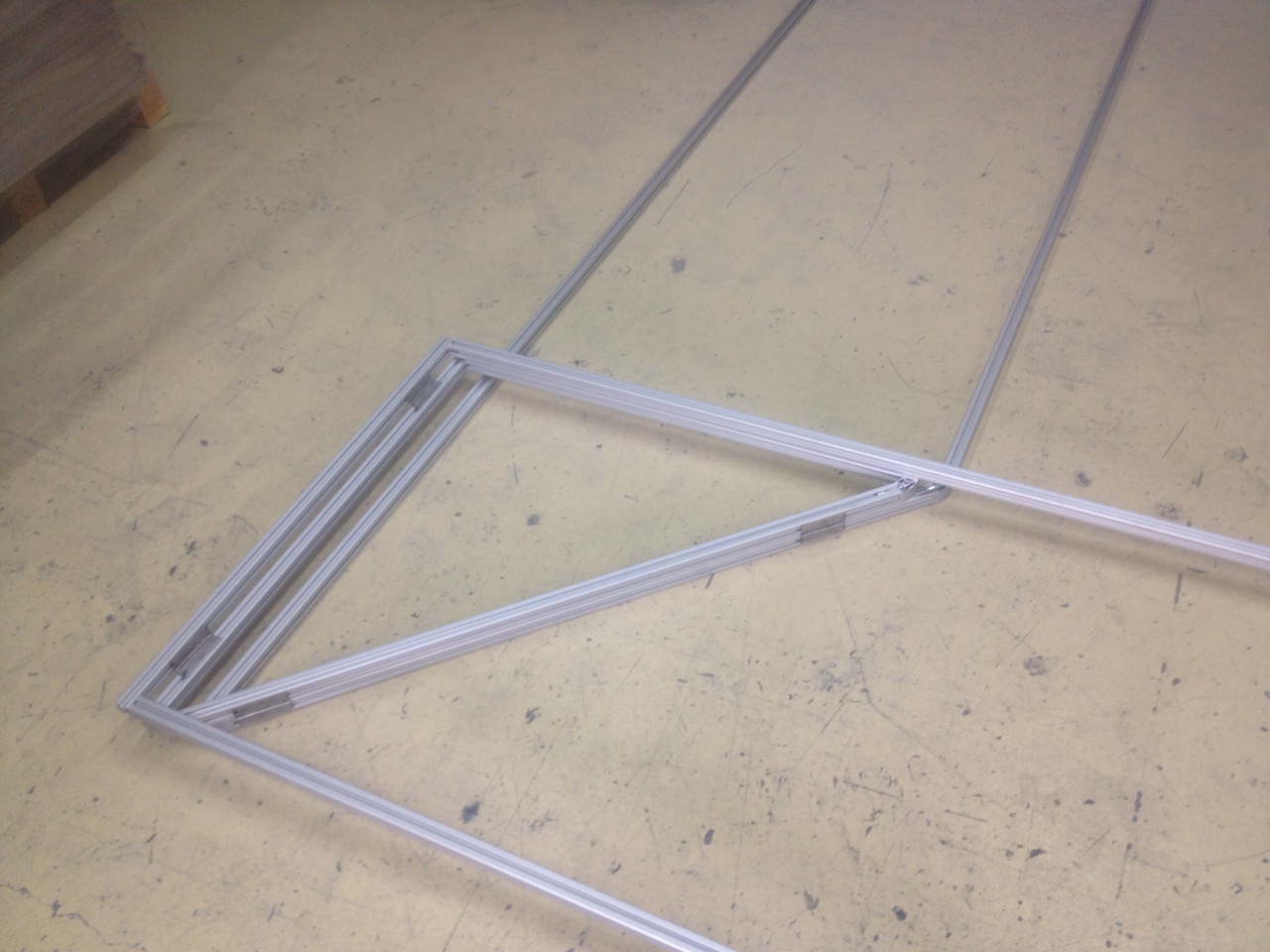Bon , alors après de nombreuses manip de l'ipad à l'ordi , j'ai enfin reussi à récuperer les photos du proto de l'ossature du toit . Il a été réalisé en profilé uniquement pour les éssais et le toit définitif sera fait en panneaux sandwich de 27mm , sur lesquels seront posés les châssis ouvrants .