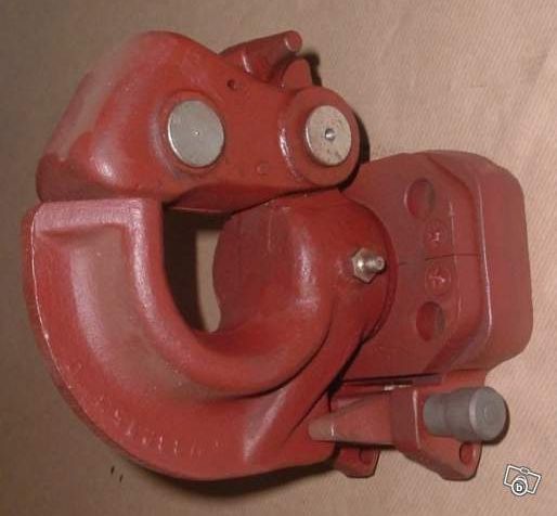 sur la 1ère on voit à l’arrière l'écrou rond retiré qui normalement lorsqu'il est en place est bloqué par une goupille, sur la 2ème on voit le crochet tiré et la cale qui empêche le crochet de tourner, une fois la cale retirée et le crochet remis en place celui ci pivote, voila j'espère ne pas avoir été embêtant avec mes petites explications, ceci dit je trouve que c'est beaucoup de travail pour débloquer ce crochet et le fait de pouvoir le bloquer ou le débloquer même avec un système D ce serait intéressant à + Francis