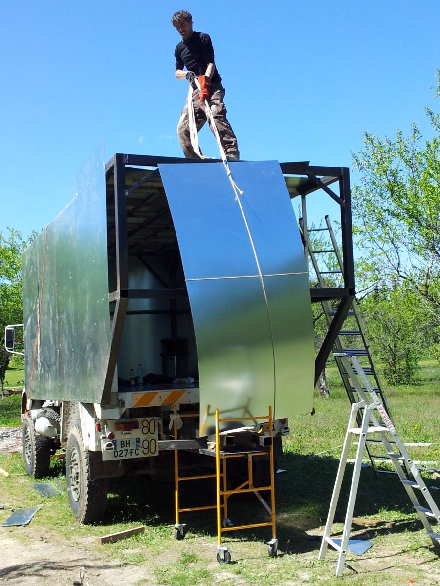 les travaux avant bien 3jours de soudure 2jours de tolage et demain 3em et dernier jour de tolage ce qu'il fait à penne une semaine pour faire la caisse on verra demain le resulta final mais pour le moment je suis assé content