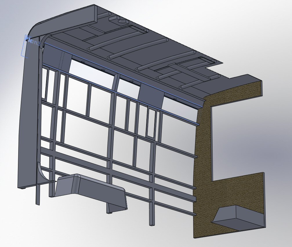 Je réutilise la partie du plafond découpée à l'avant pour faire les côtés de l'arrière...