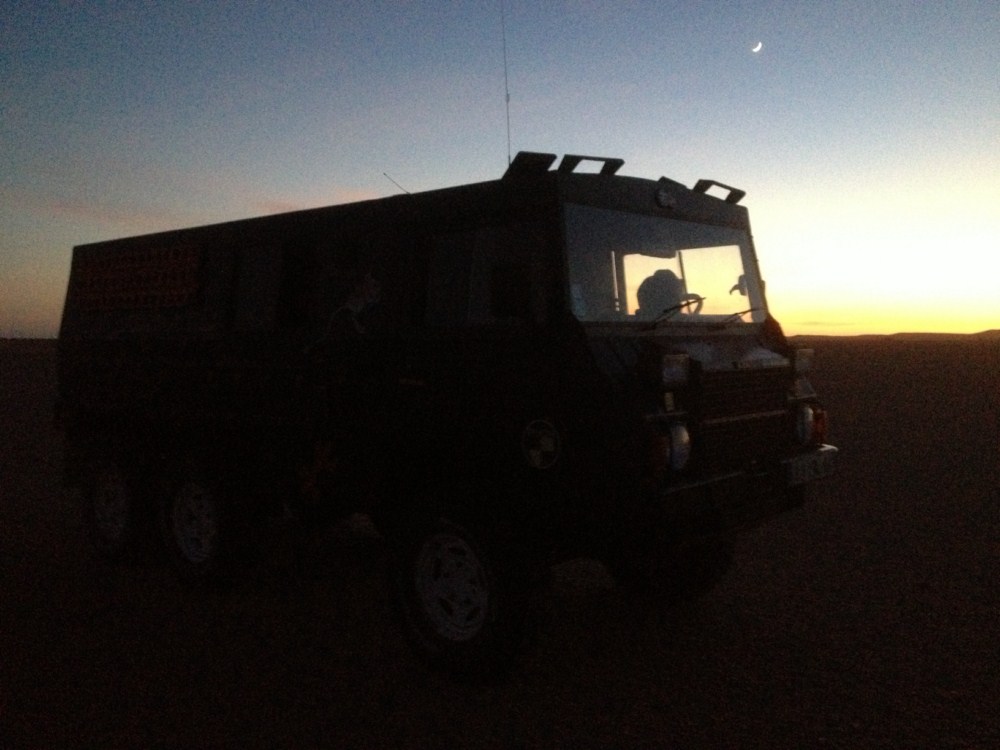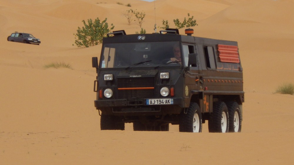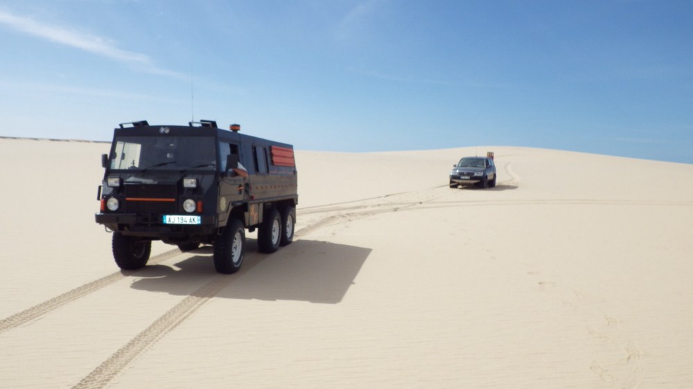 Voilà, ensuite, je suis allé me dégourdir les roues dans les dunes.. Auparavant, mon chauffeur , m' avais dégonflé tous mes pneus à 900g , et il y a passé du temps , eh! eh! 6 roues .