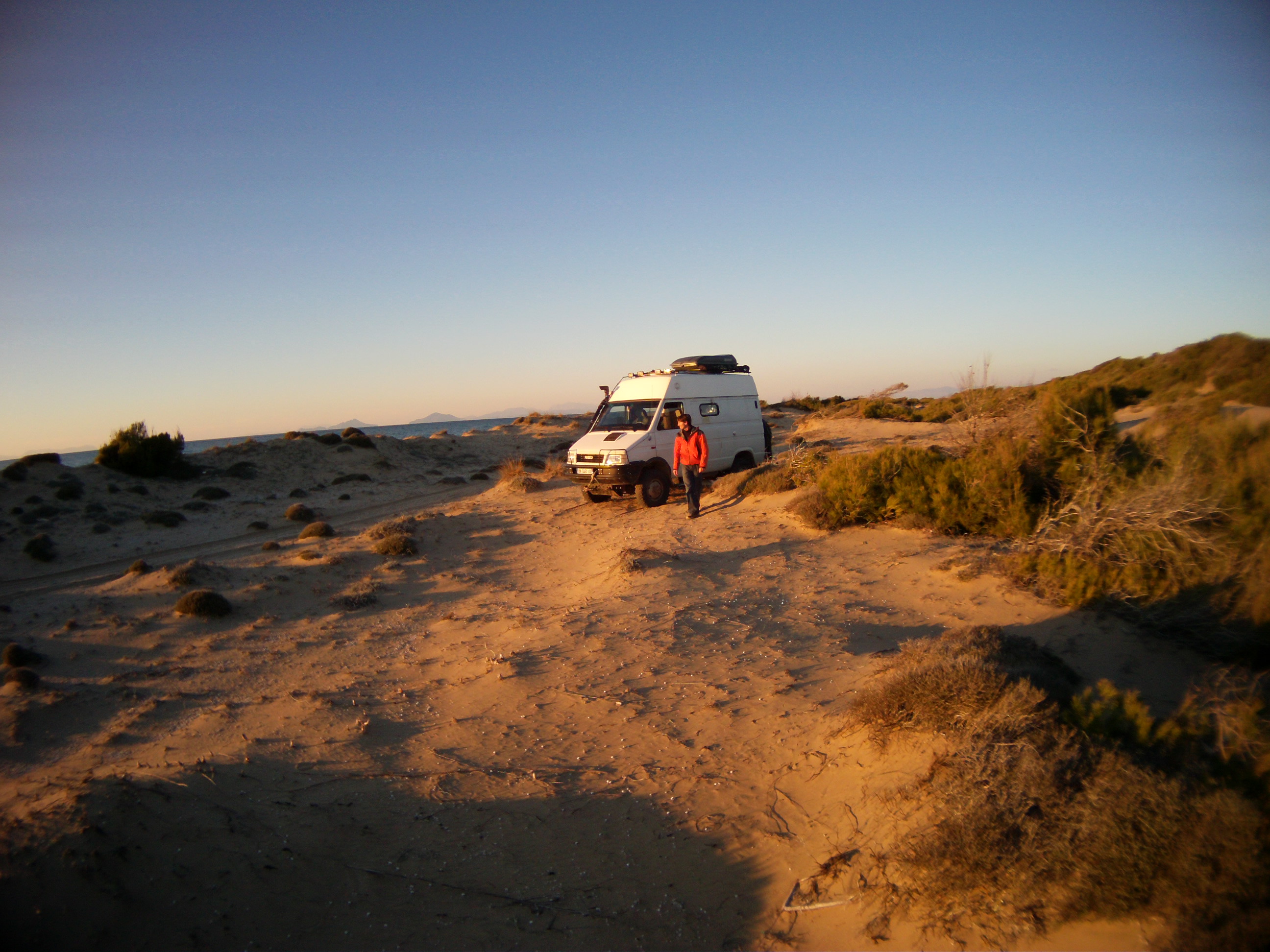 Dans un deuxième temps, « débarrassés » du plastique-car, nous nous sommes dirigés vers la côte Ouest du peloponèse avec ses longues plages (jusqu'à 60km!) protégées en grande partie des constructions par de petits cordons de dunes.... On a pas eu à hésiter longtemps avant de dégonfler et à nous les paysages idylliques qui nous ont rappelés de très bon moments passés au Maroc, notamment à la Plage Blanche (en moins grandiose évidemment).