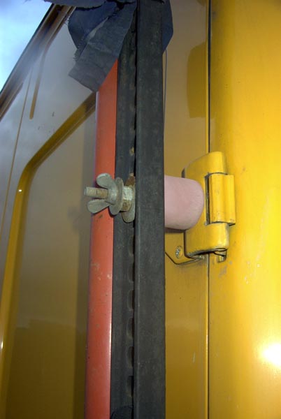 En démontant les bancs à l'arrière du fourgon, j'ai trouvé un cric bouteil de 20cm de haut...