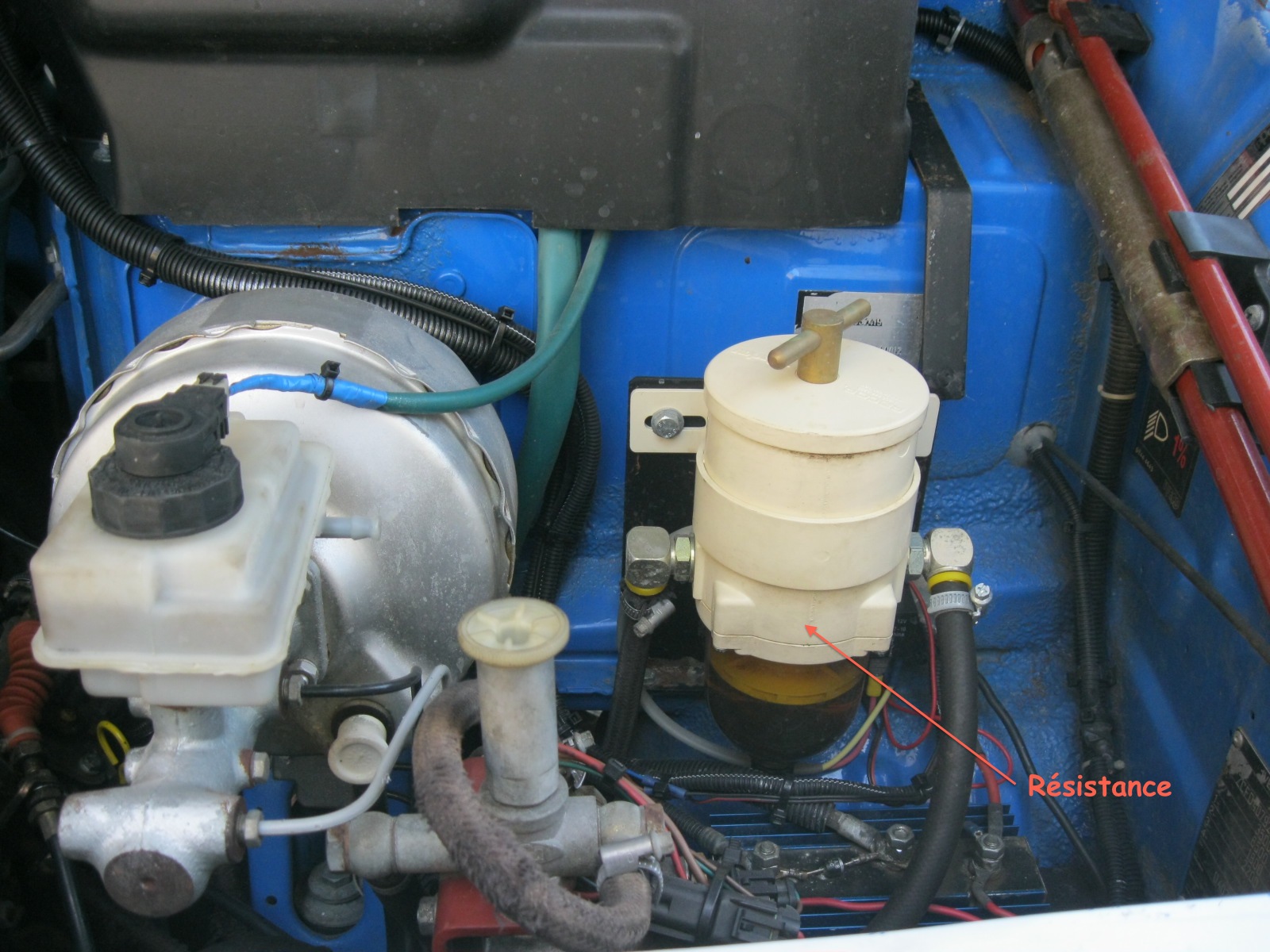 Ensuite il est effectivement assez aisé d'installer un réchauffeur avant le filtre..... Puisque c'est à ce niveau que ça coince, les particules de paraffine bouchant simplement ce dernier.