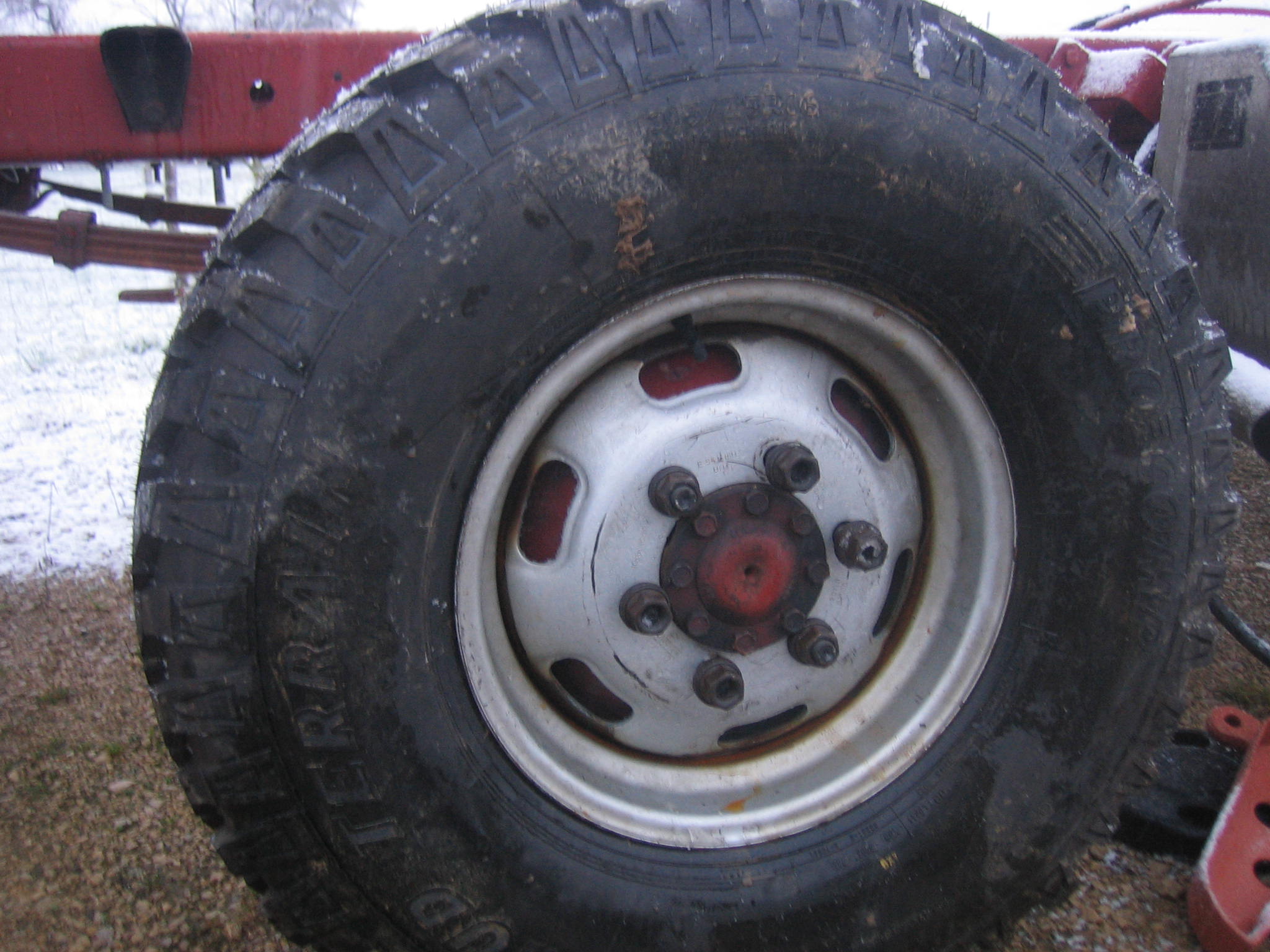 Une photo monté sur mon iveco avec son pneu en 315 75 16, le deport est assez faible.
