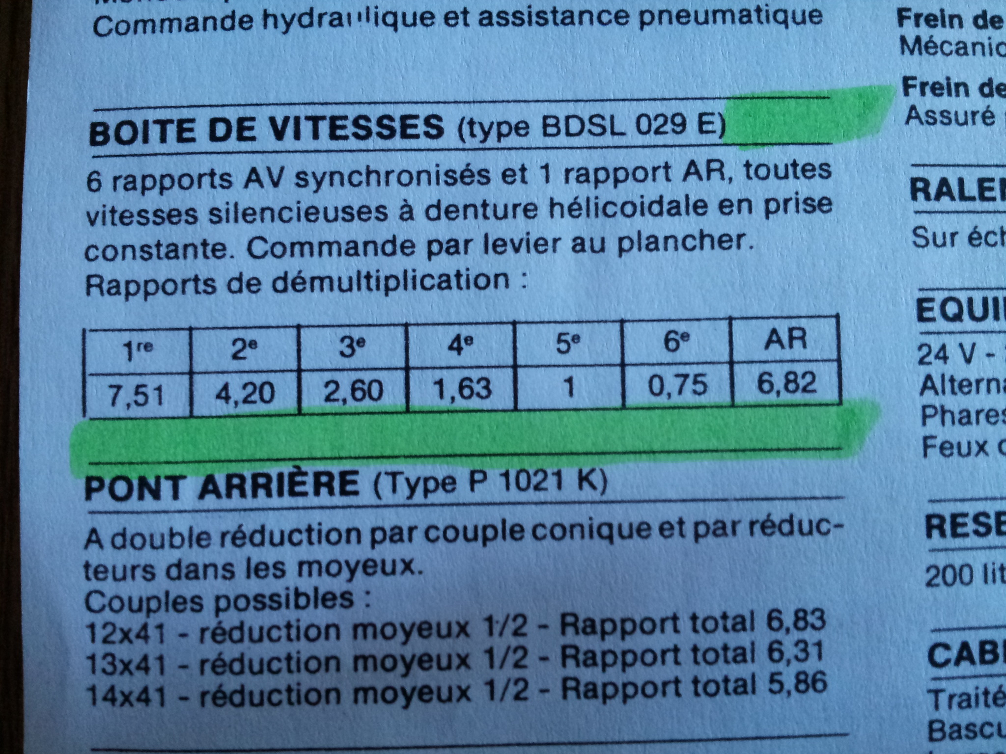 effectivement si je me rapporte à la fiche technique que tu a mis dans le post, le rapport indiqué inscrit sur la plaque correspond à la première vitesse qui dans le cas de la S6 est plus lent. Dans notre cas cela a peu d'importance puisque nous avons des réductions dans la BT.