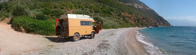 - nous avons bivouaqué tous les soirs, sauf un soir en camping pour pouvoir laver notre linge. Aucun soucis pour bivouaquer : partout on a été bien accueillis, des sourires, des mots gentils. A partir du Péloponnèse on a dormi tous les soirs sur la plage, expérience inoubliable !