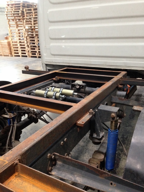 3 points, châssis fixe souple suivant les déformation du châssis du camion ou une autre idée : actuellement la tri-benne repose sur 2 traverses indépendantes (perpendiculaires aux longerons du camion) avec aux extrémités les 4 boules d'articulation. Je me demande si sur le même principe on ne pourrait pas construire 2 traverses perpendiculaires au longerons du camion, indépendantes, en acier à haute élasticité , puis fixer le châssis alu (plutôt rigide) aux extrémités extérieures et le faire reposer au niveau des longerons du camion sur des tampons caoutchouc? Du coup les 50cm de traverses débordant sur l'extérieur encaisseraient un peu les déformations et on pourrait peut-être remonter la tri-benne sur ces mêmes traverses. Un autre truc qui me semble pas mal sur la tri-benne actuelle ce sont 2 supports qui viennent s'appuyer sur les longerons du camion à mi-chemin entre les 2 traverses quand elle est très chargée (flexion de la benne). Ainsi on conserve une certaine souplesse et on peut quand même charger fort. Je vais dessiner ça et vous soumettre le plan...