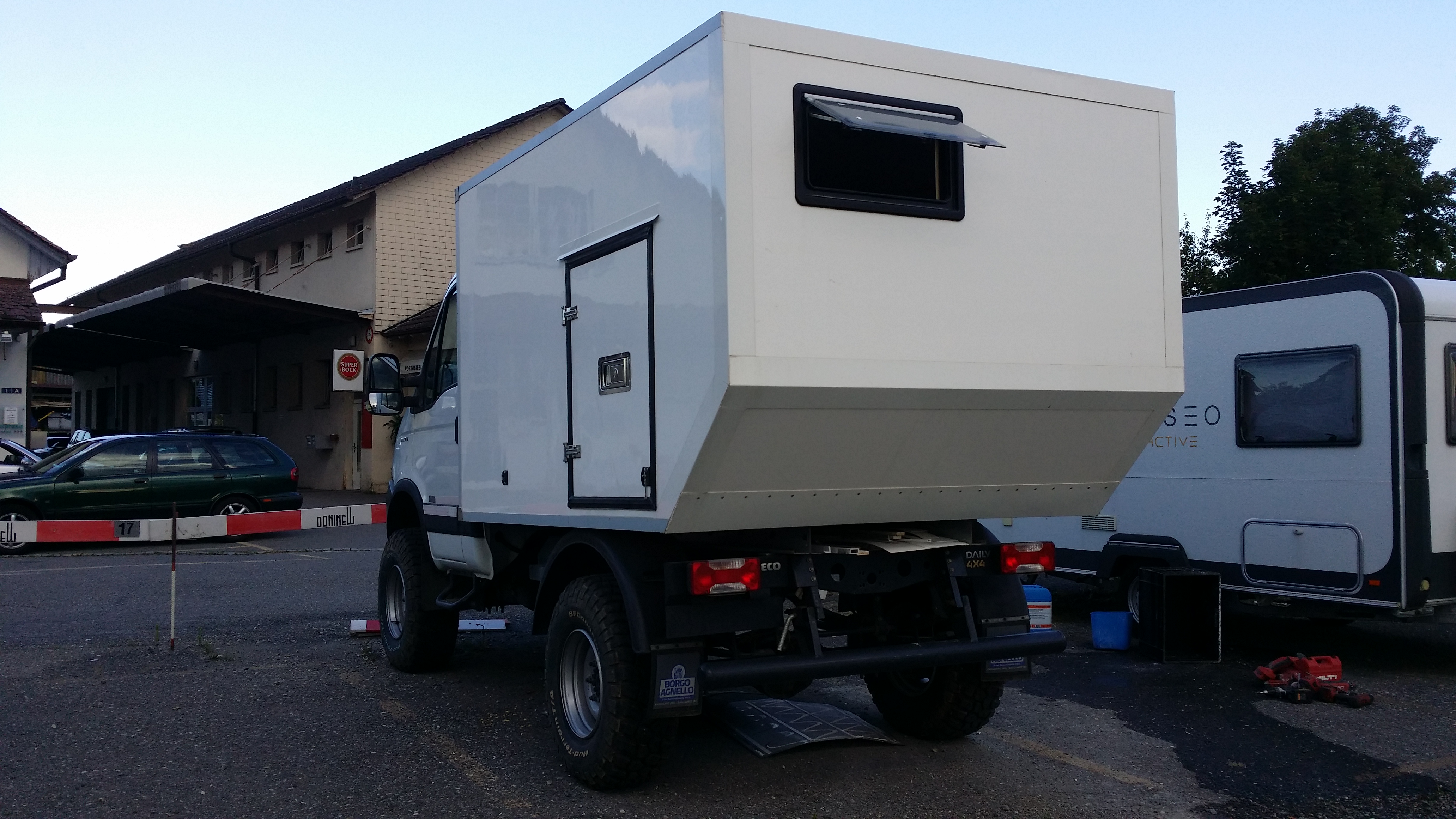 Inconvénient, son prix, cabine plus volumineuse ce qui augmente la longueurs final du véhicule et qui rends difficile le montage avec une capucine, hauteur total final mini environ 3,50m.