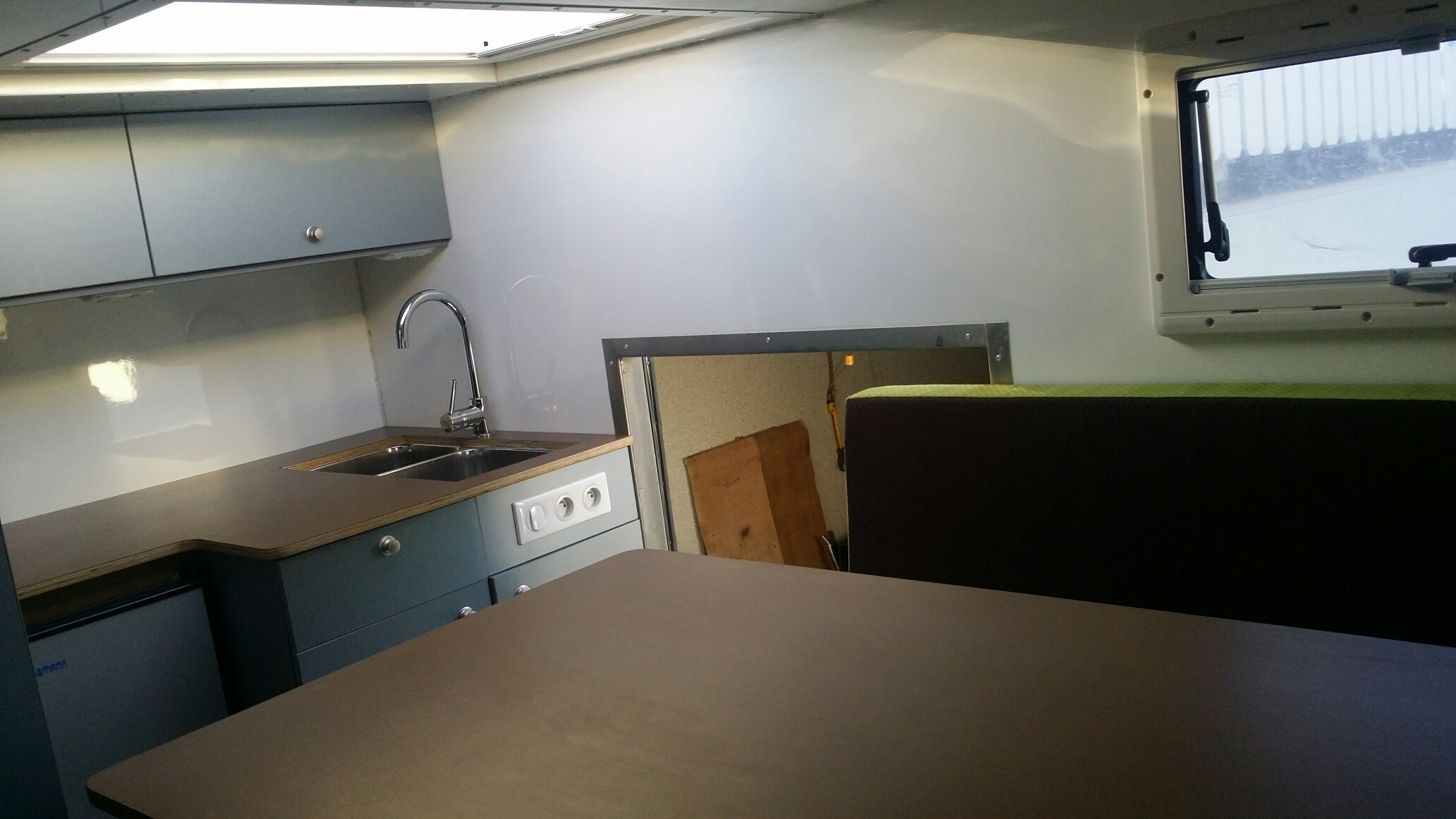 Ce qui est sur c'est que ça vrille un peu (j'ai des repères si je m'arrête en croisement de pont même léger). J'avais anticipé en réalisant des aménagements par "blocs" indépendants les uns des autres et tous montés sur des joints épais de Sika sur leur pourtour pour absorber un peu les déformations et vibrations, rien n'a bougé non plus à l'intérieur. L'acier ne se délamine pas comme les matériaux composites, j'espère donc une durée de vie égale à la mienne :lol: encore 50 ans... :lol: :lol: