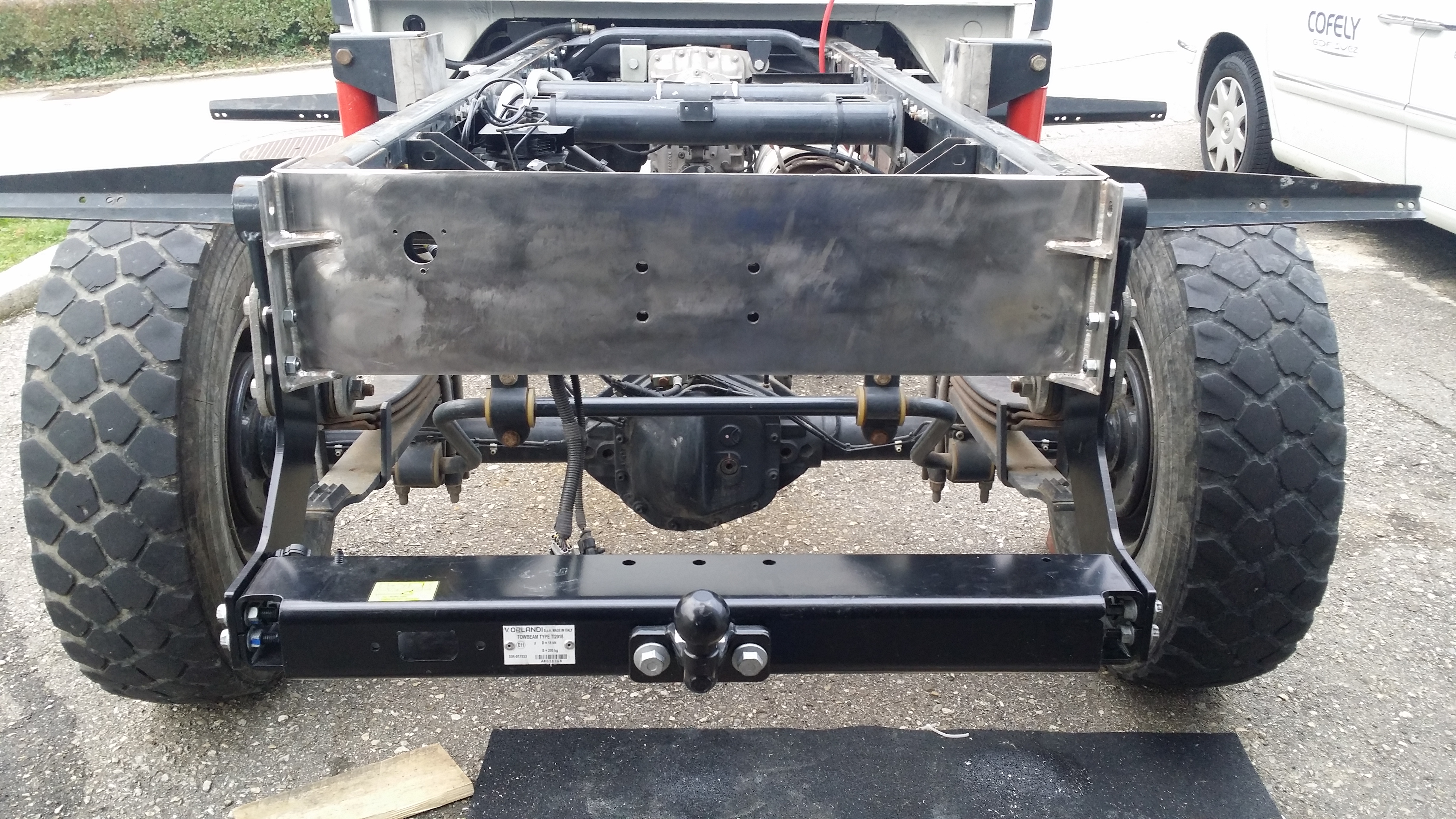 J'ai fabriqué un petit châssis à l’arrière qui va servir à fixer mon faux-châssis et aussi mon attache remorque, il n'en existe pas que l'on puisse acheter chez iveco ! ?