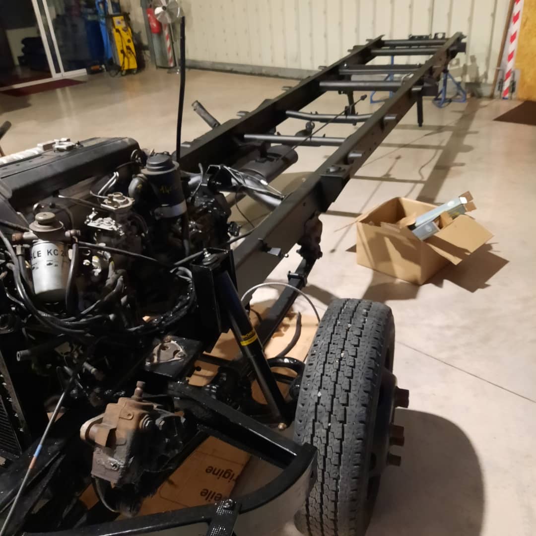 Bien sur la cabine a sauter elle est mise de côté et la benne aussi j'ai maintenant pont arrière de mascott 3.0 dxi 160 CV injecteur et nez dlla 150p235 de b110 pompe tête en 14 turbo iveco 35c12 variable durites frein aviation et tout est repeint epoxy et châssis en peinture résine