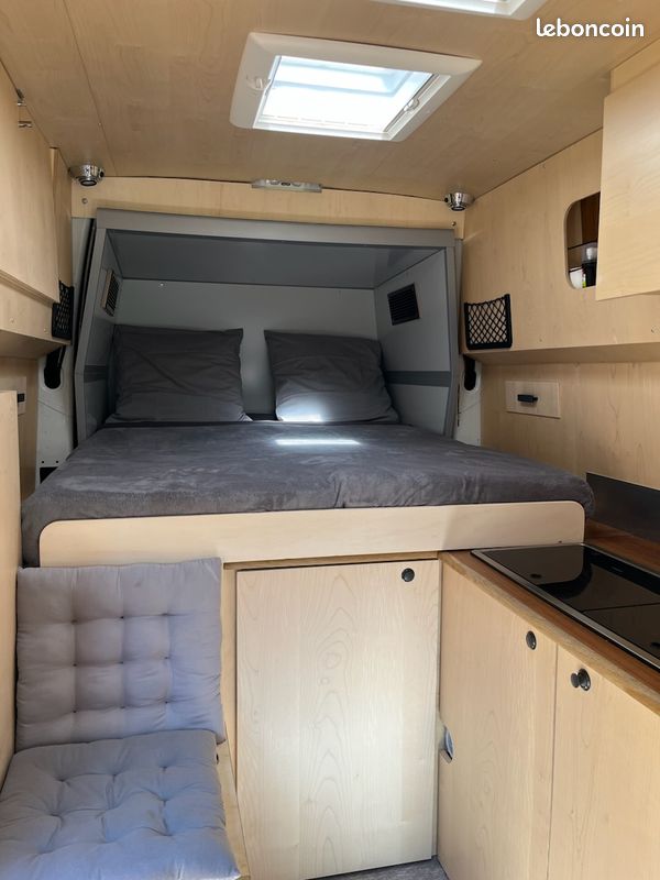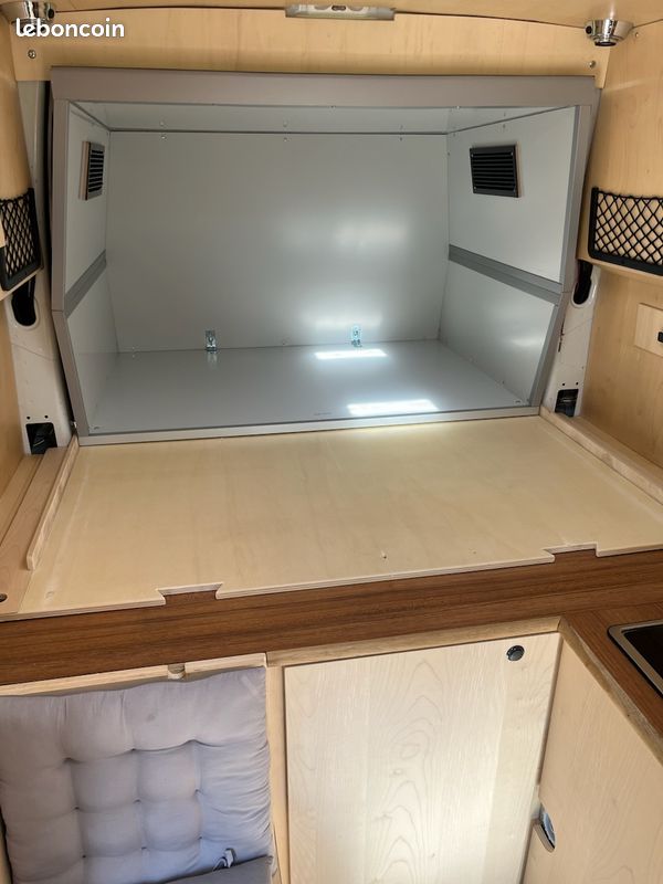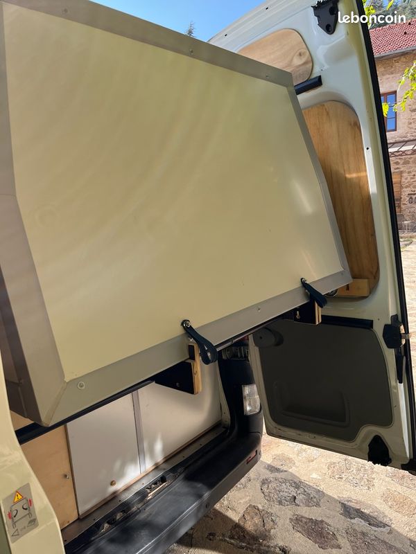 Artisan ébéniste, j'ai conçu et réalisé en 2021 un volume isolé et étanche, amovible, me permettant d'augmenter l'habitabilité de mon fourgon Trafic Renault L1 H2 (utilisé au cours des 3 dernières années).