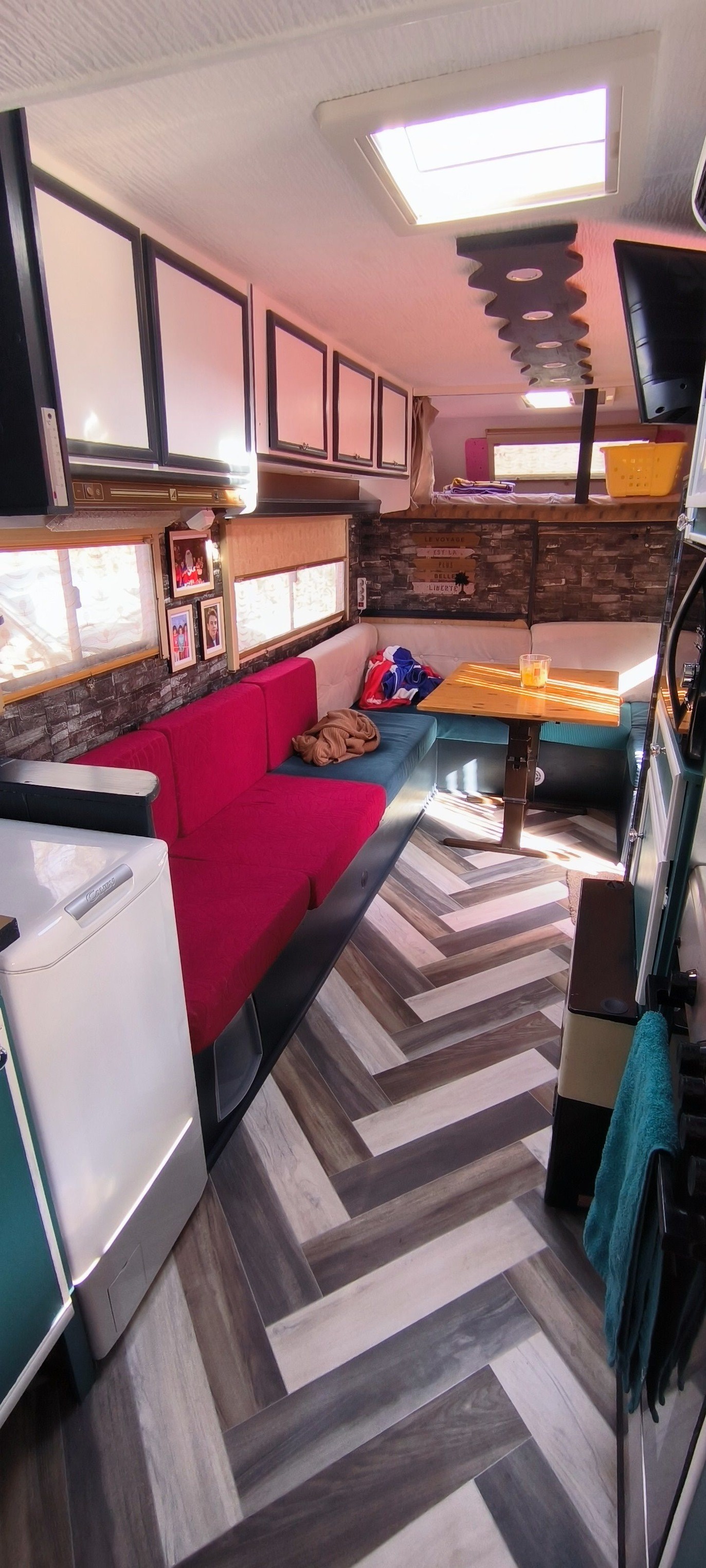 je me pose souvent cette question aussi de savoir a quel moment finalement on a le plus besoin de volume dans le véhicule...je ne suis pas sur effectivement que ce soit au moment ou on va se coucher. ici on a l'avantage d'avoir un lit déjà fait et malgré tout qu'il ne prenne pas toute la place, et de pouvoir quand même dormir dedans aussi sans devoir forcément sortir l'extension. mais est ce l'usage le mieux pensé je ne sais pas trop dire. de toutes façons quand le climat le permet on préfère généralement passer du temps dehors plutôt que dedans, la question se pose donc plus pour les jours pluvieux ou les climats froids je pense.