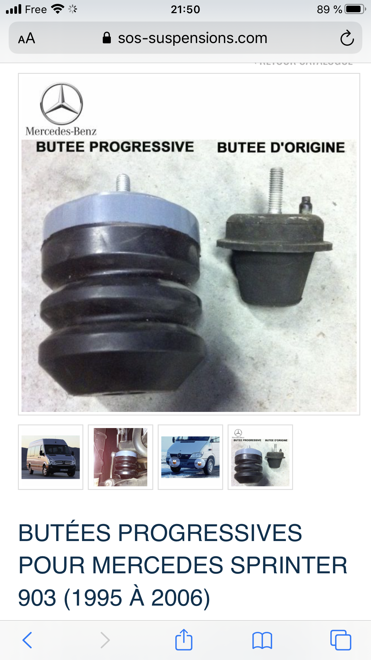 Sinon dans les solutions très efficaces mais nécessitant un budget conséquent il y a toujours les combinés Fournales que sur le Sprinter il faut monter en complément des lames ressorts transversales (pas à la place).