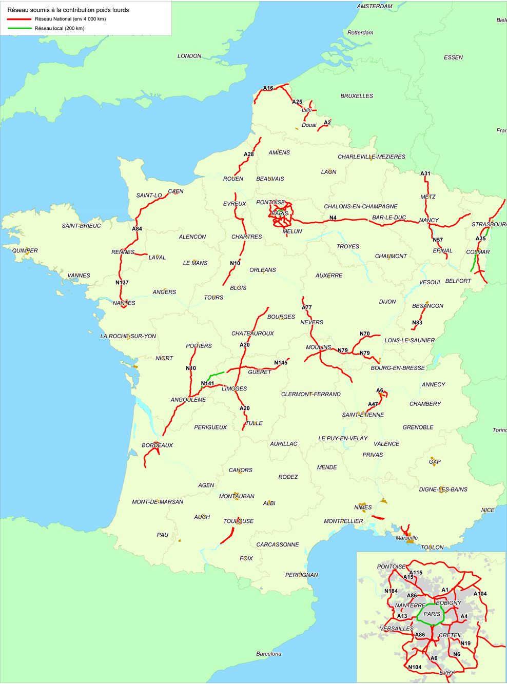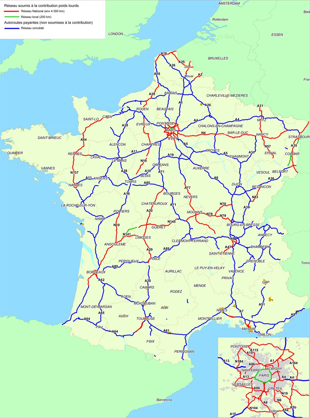 La même avec les autoroutes, donc la carte du réseau français payant pour les PL :mrgreen: