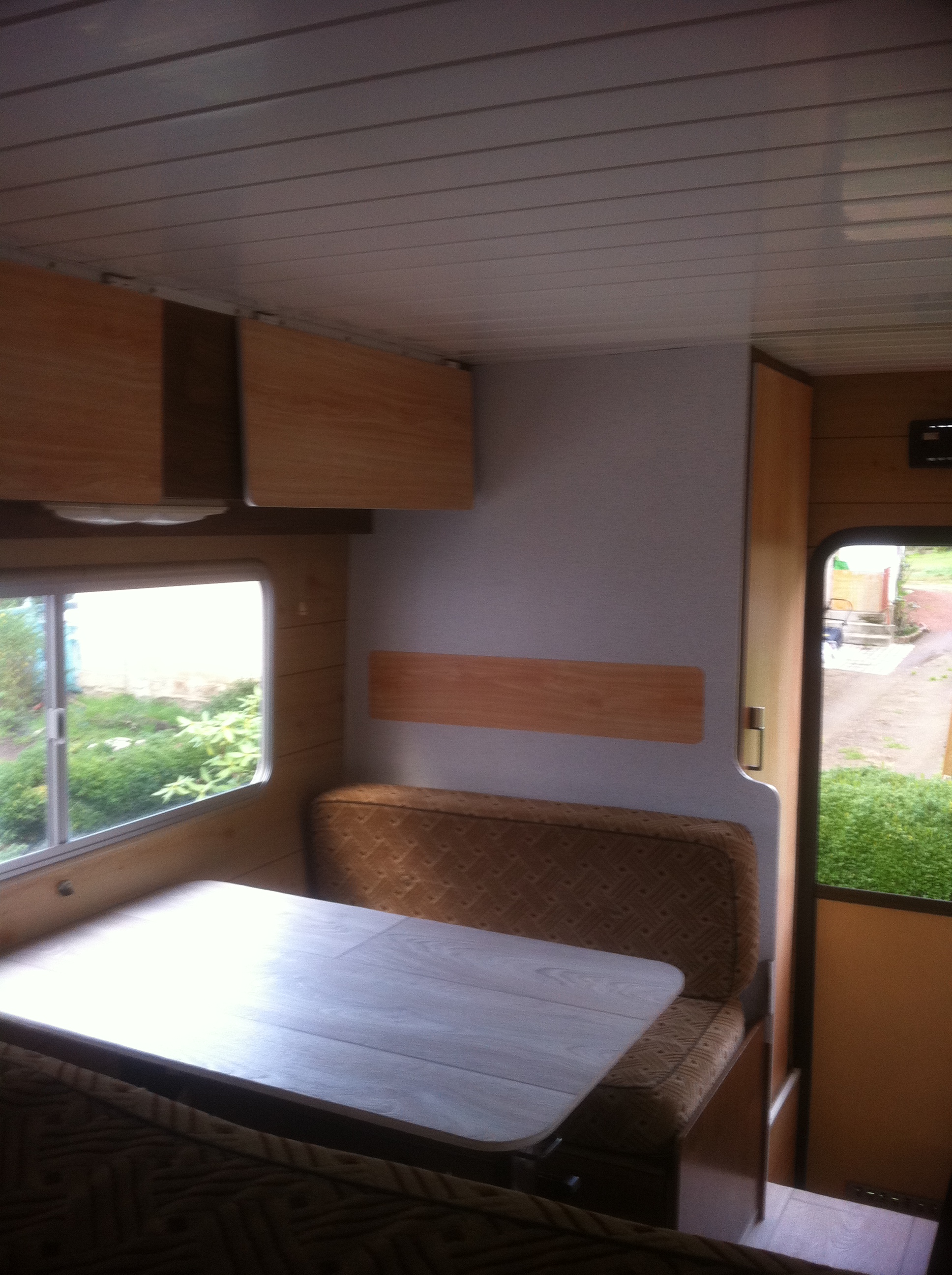 j ai tout refais a neuf du sol au plafond y compris la salle de bain avec WC encastré sous la banquette tout est neuf et qui n'a pas encore servi .