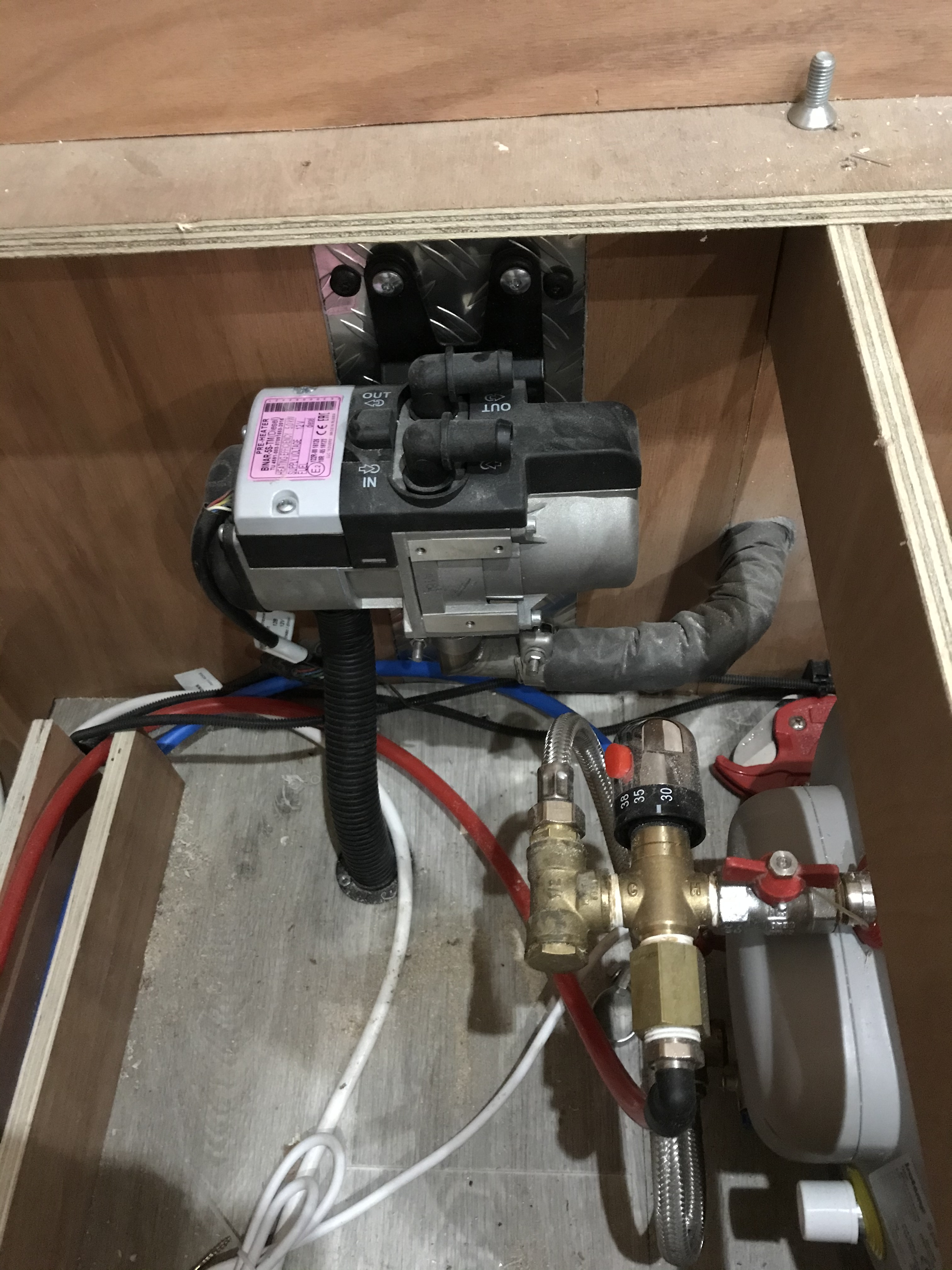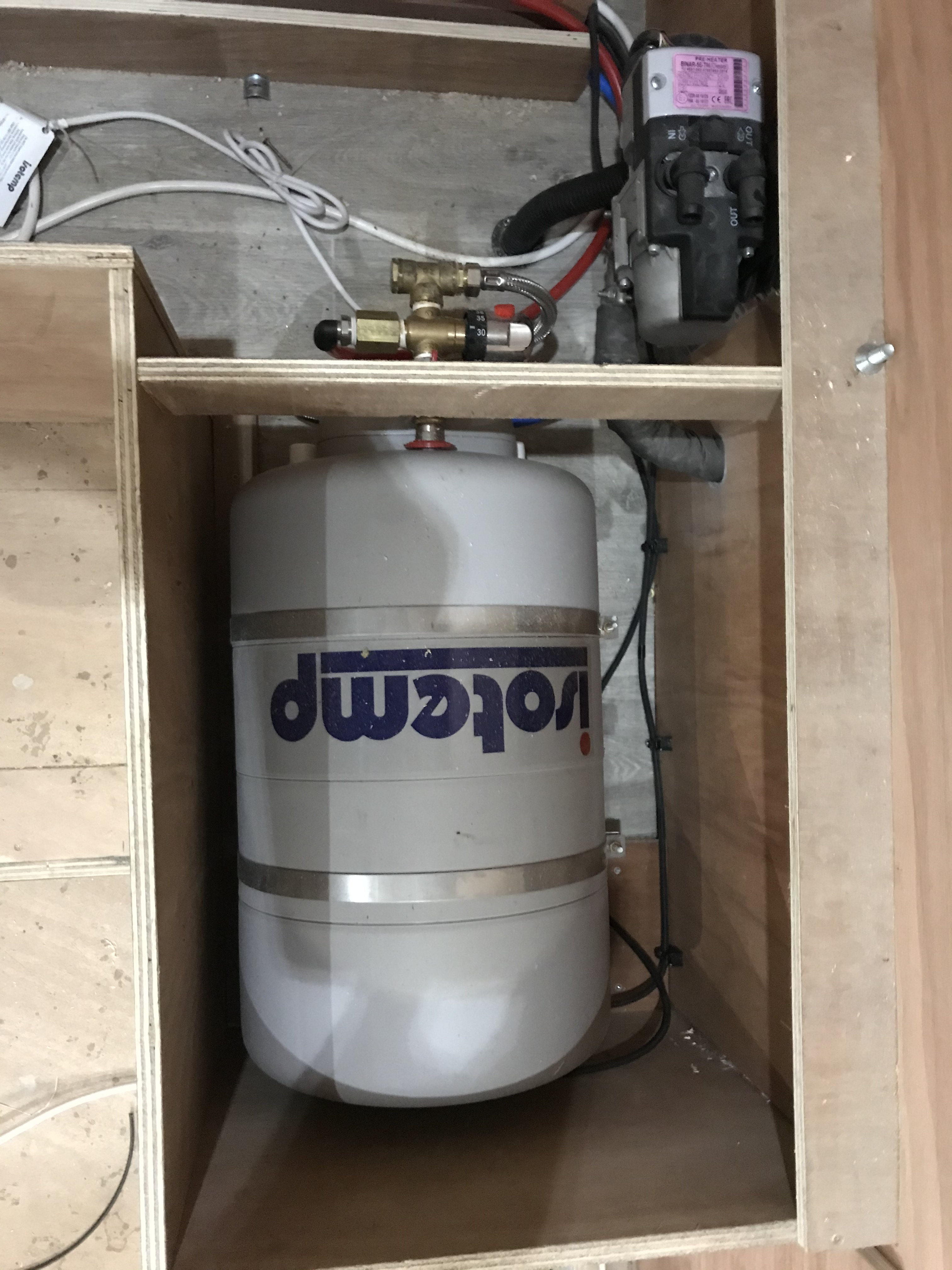 Pour l eau chaude un boiler de 20l une chaudière Autotherm 5kw , ( eau chaude , chauffage cellule et moteur )