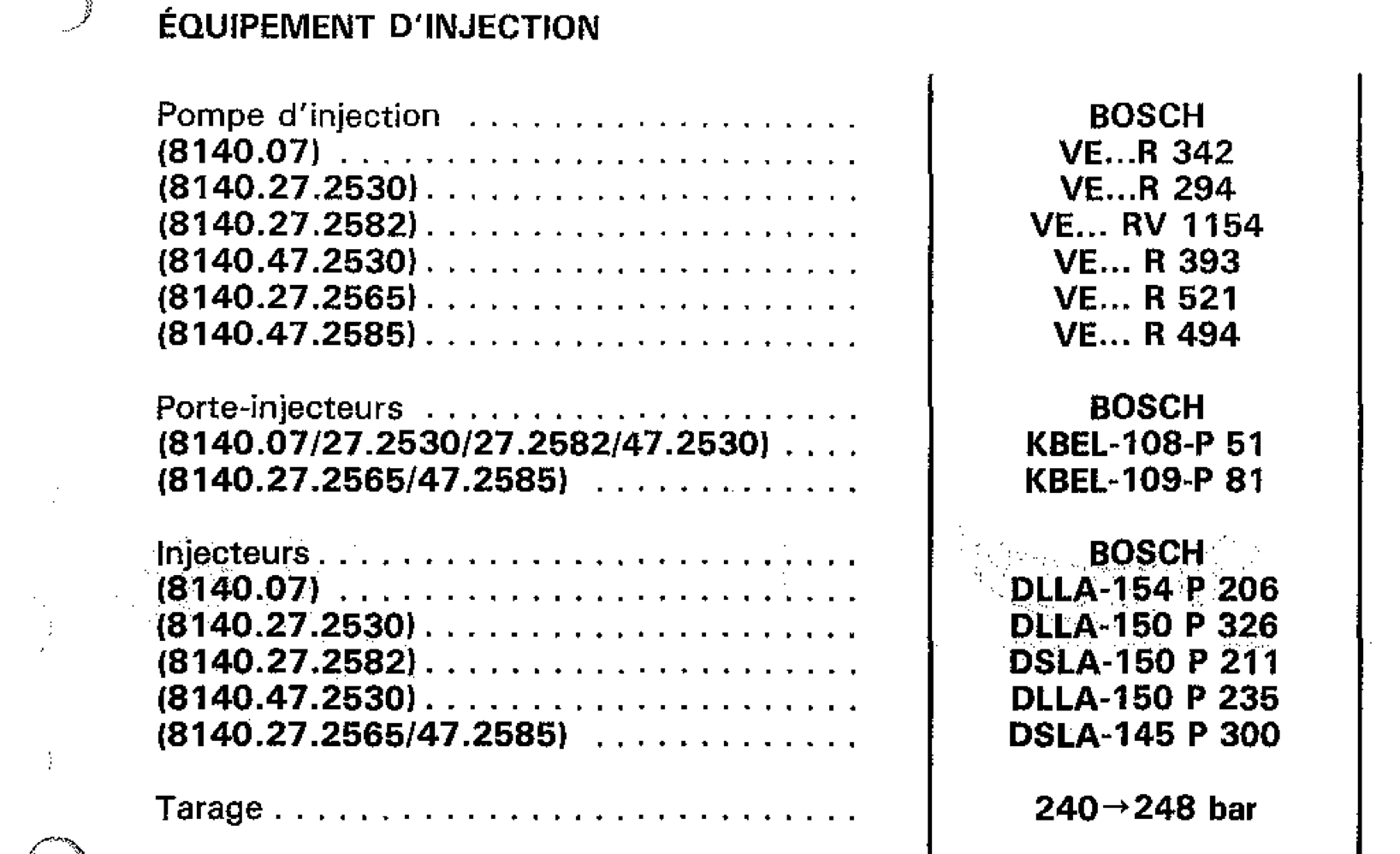 Visiblement les injecteurs 140 P 235 on étés montés sur les 8140.27 2565 ( 2,5l) et sur les 8140.47 2585 qui est a priori lui aussi un 2,5l 116 cv. Je savais pas qu'il y avait un 47 en 2,5l