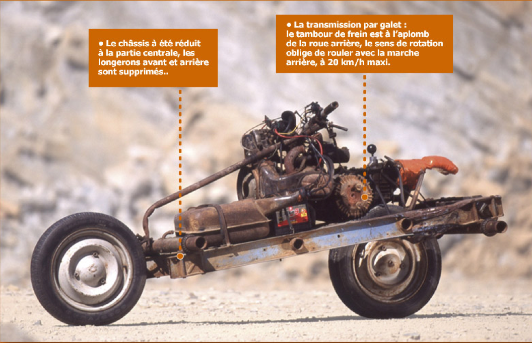 Une 2CV transformée en moto et ça dans le désert, vous connaissez ?