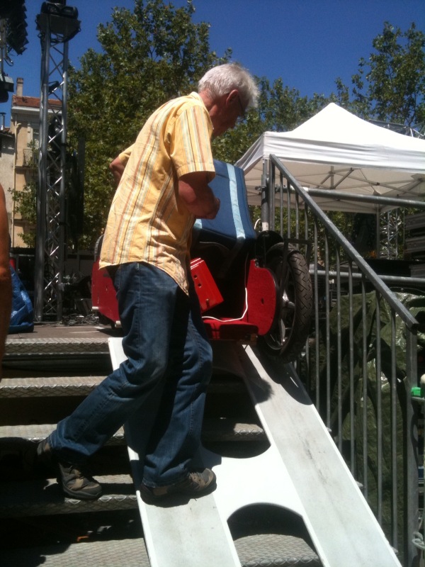 'lut Oliv, en faisant des recherches sur la table élévatrice de Bruttpit, j'étais tombé sur cet engin, et il en éxiste un semblable qui enroule les marches, un peut comme les caddys de grands mères avec trois roulettes de chaques côtés, impressionnant ce que ça emmène et ou ça passe. il y a des vidéos de démos sur youtube...