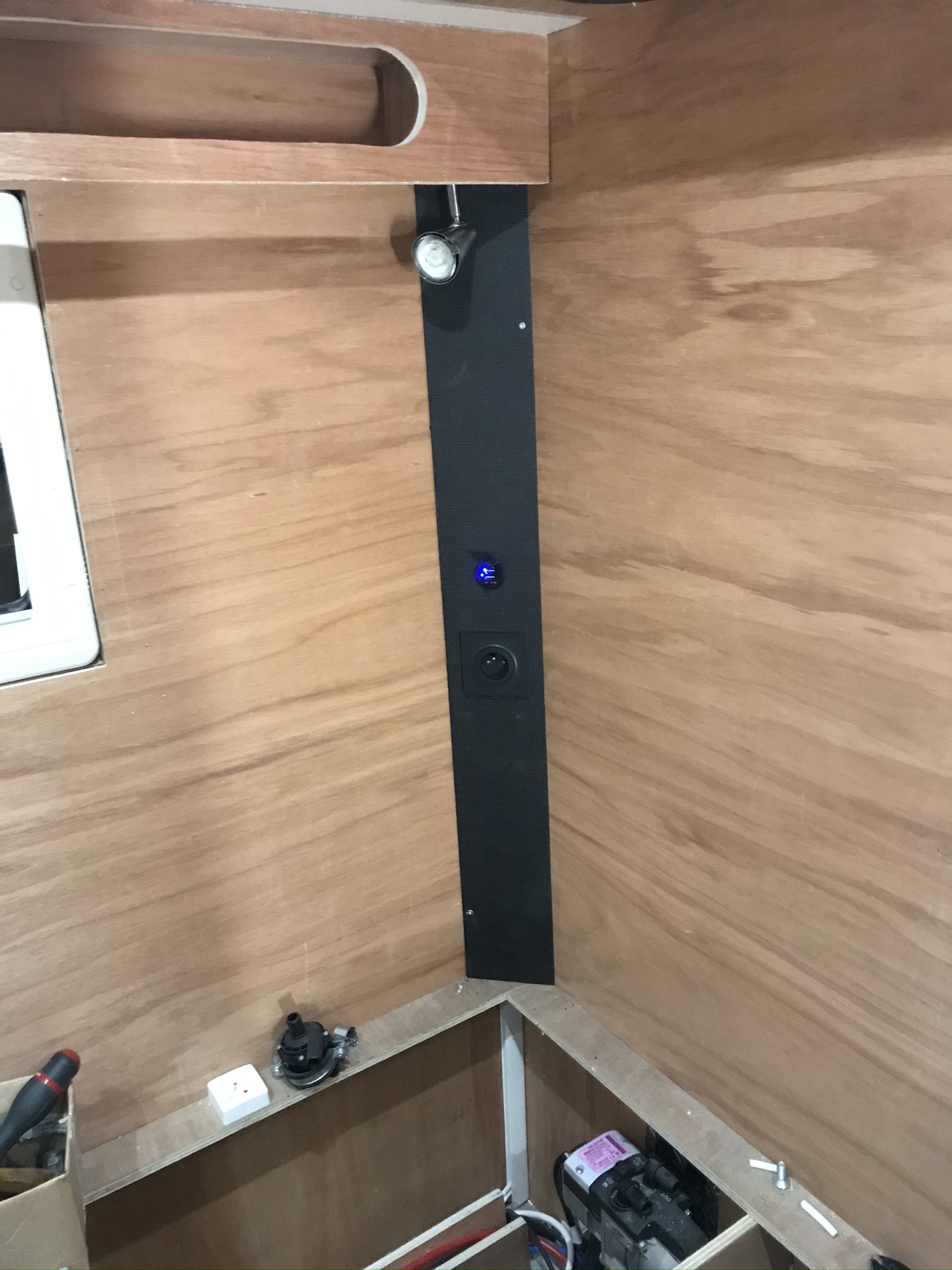 Petite rampe , usb et 220v dans l angle de la banquette