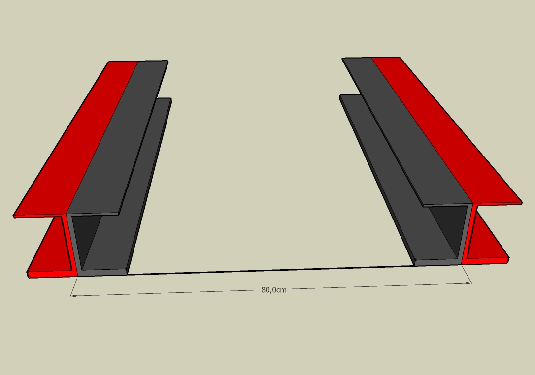 Non non c'est bien comme Antoine l'a schématisé, le faux châssis de la caisse est plus étroit que mon châssis de camion. A votre avis, je soude ou je boulonne le fer en U? Et ensuite, comment faire la liaison châssis - faux châssis?