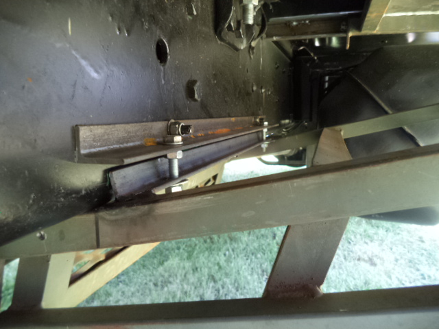 Dans cette position il est tenu par deux vis fixées sur un fer que j'ai vissé sur le châssis. j'ai profité de trous existants car il n'était pas question de percer ça.