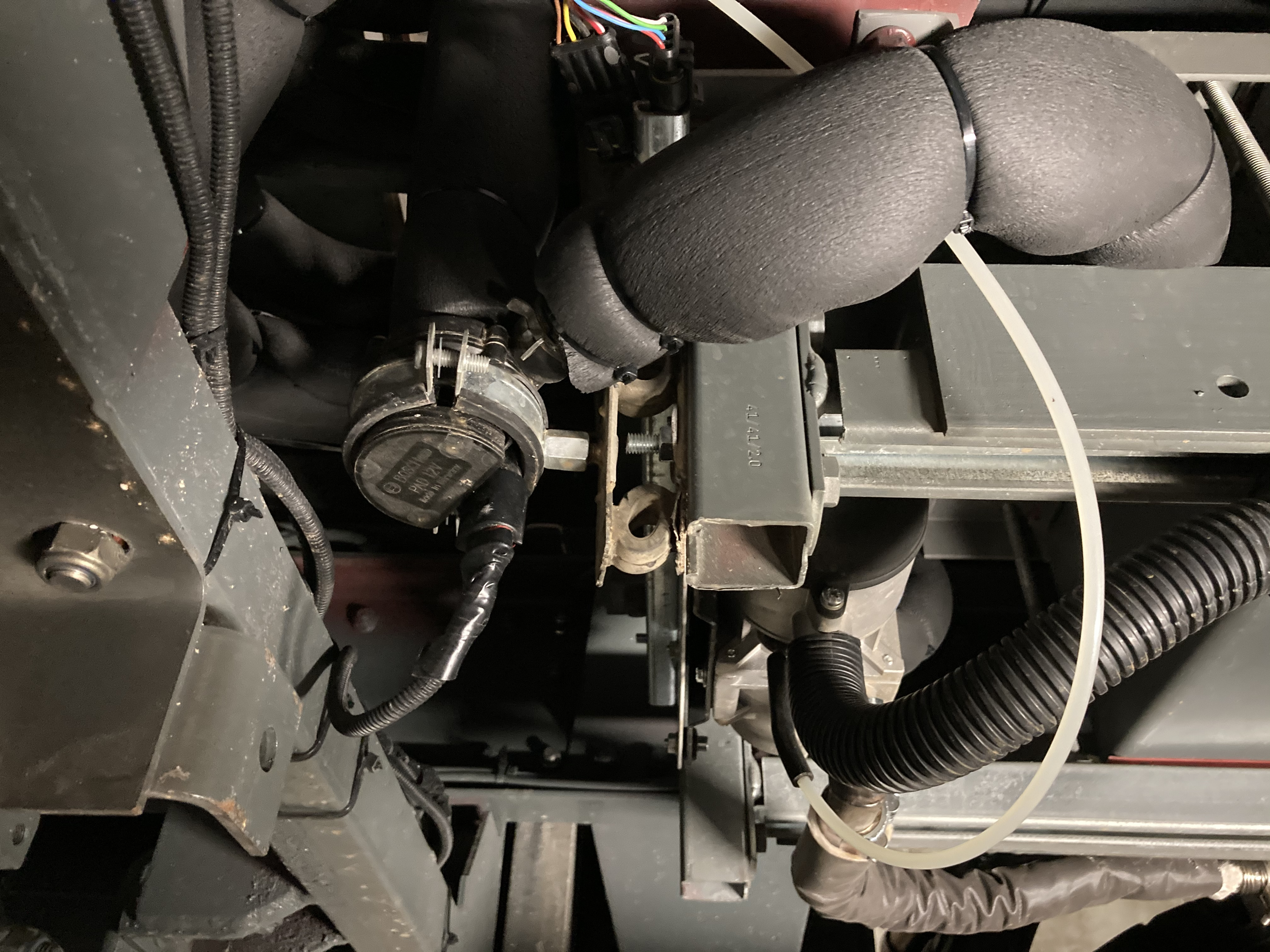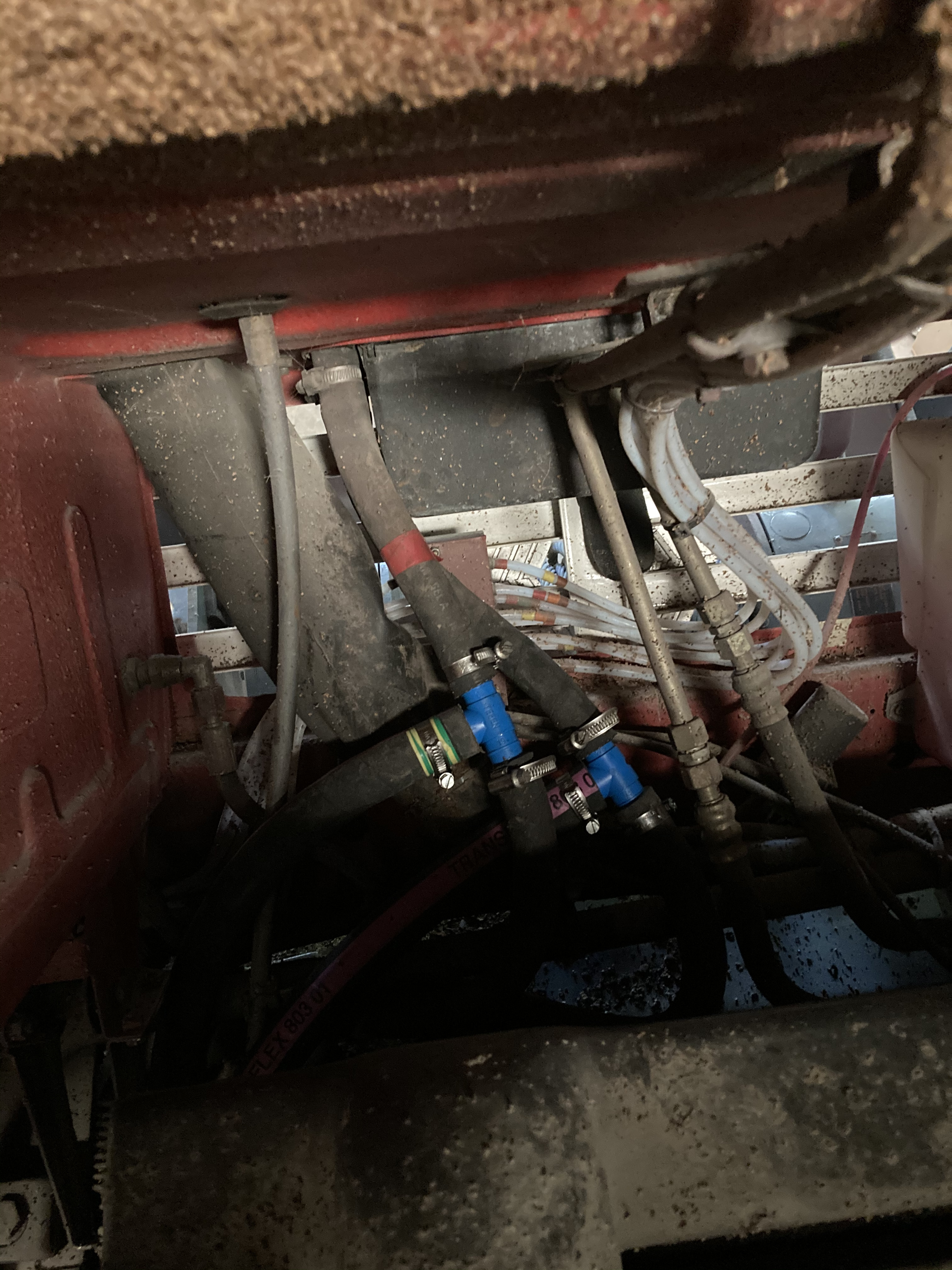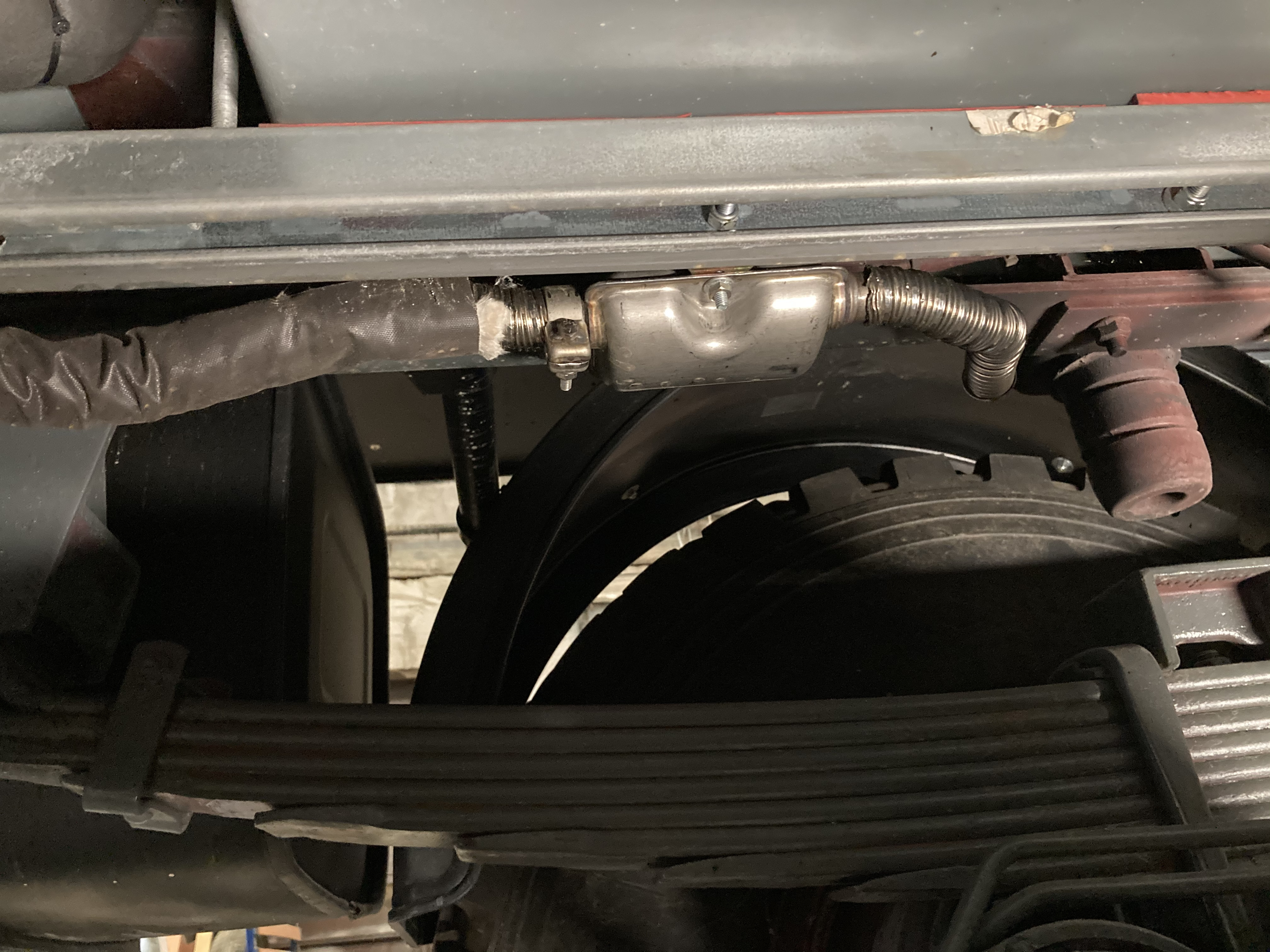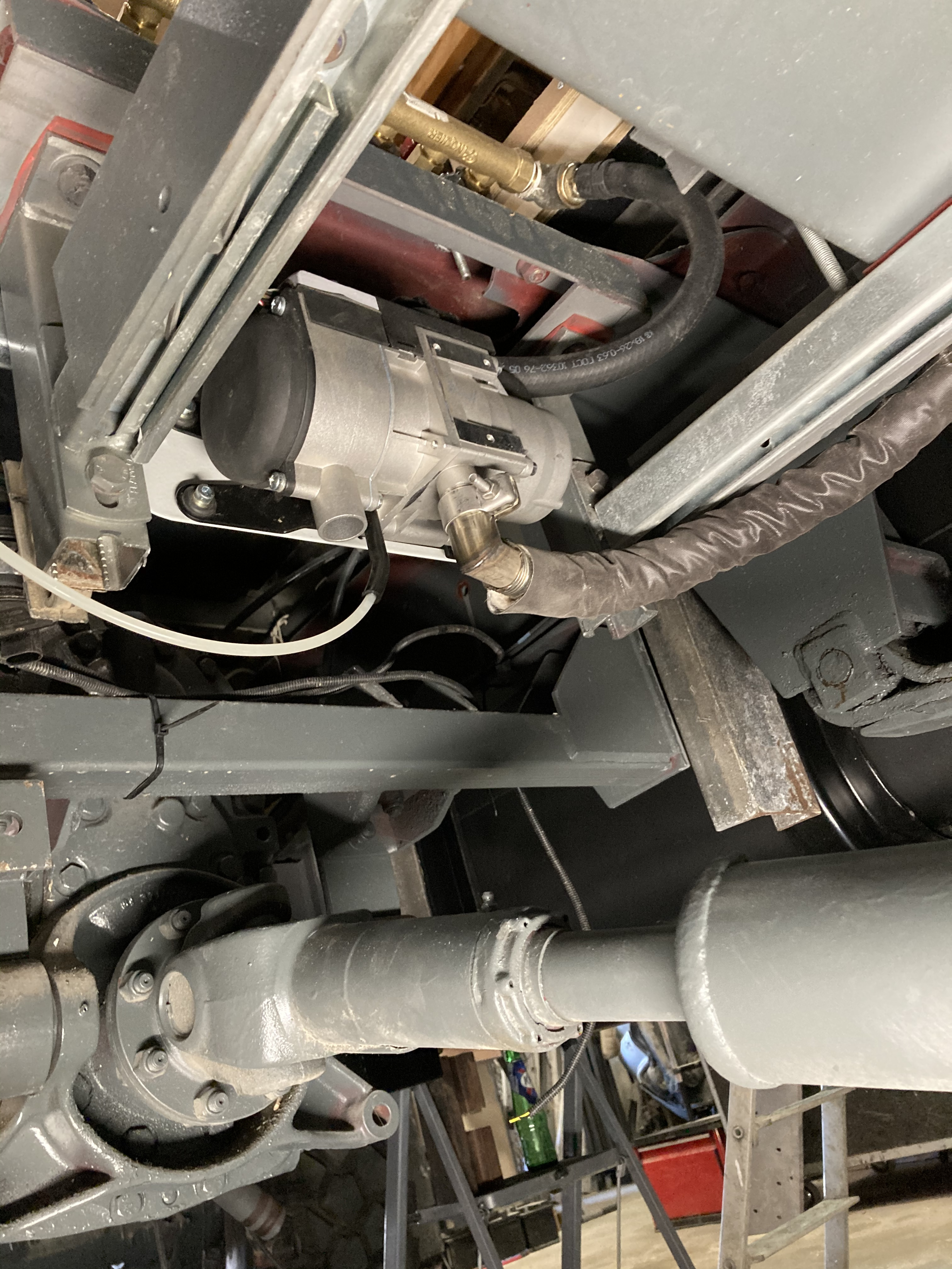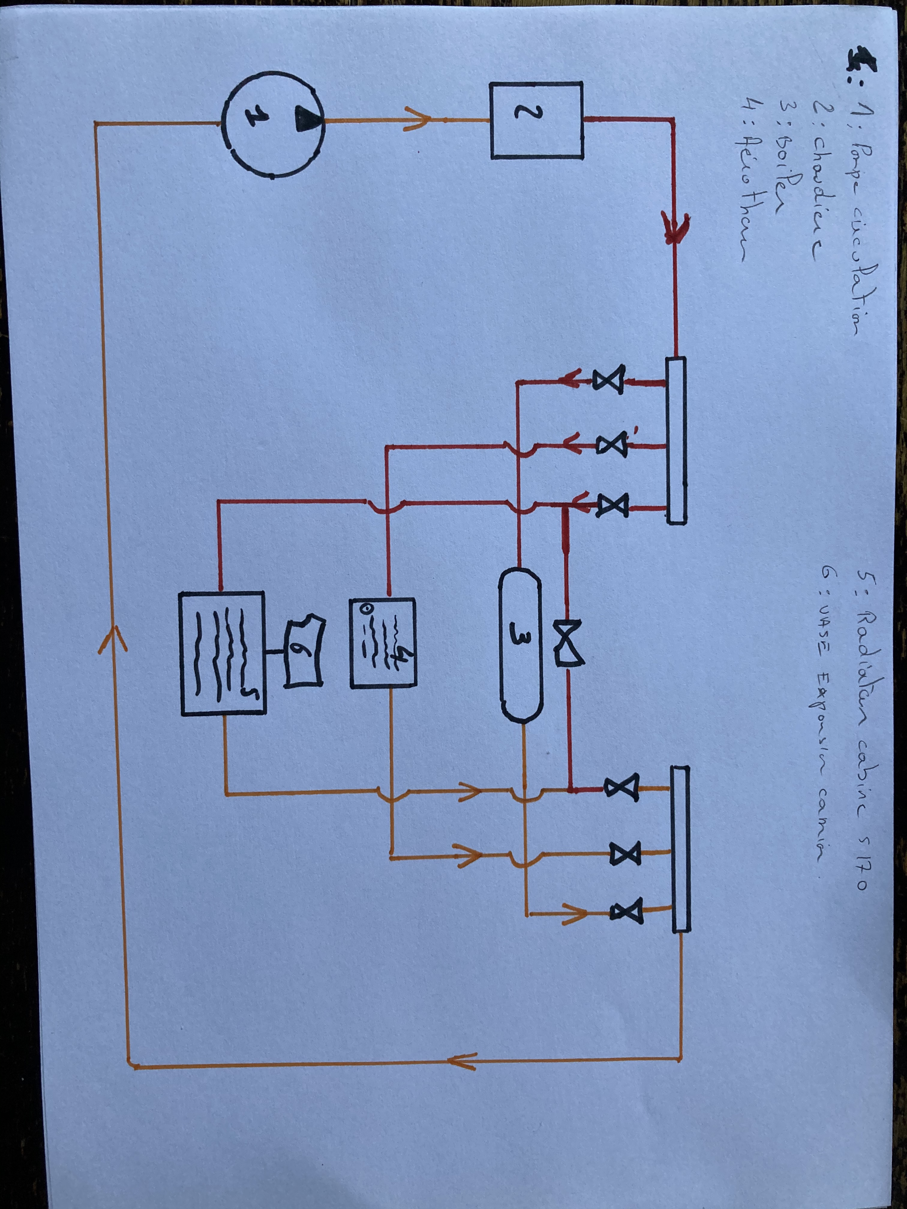 Sur le retour Mise en place de la pompe de circulation direction la chaudière puis la nourrice qui va alimenter le boiler , l aérotherme et le moteur sur la durite d entrée du radiateur cabine .
