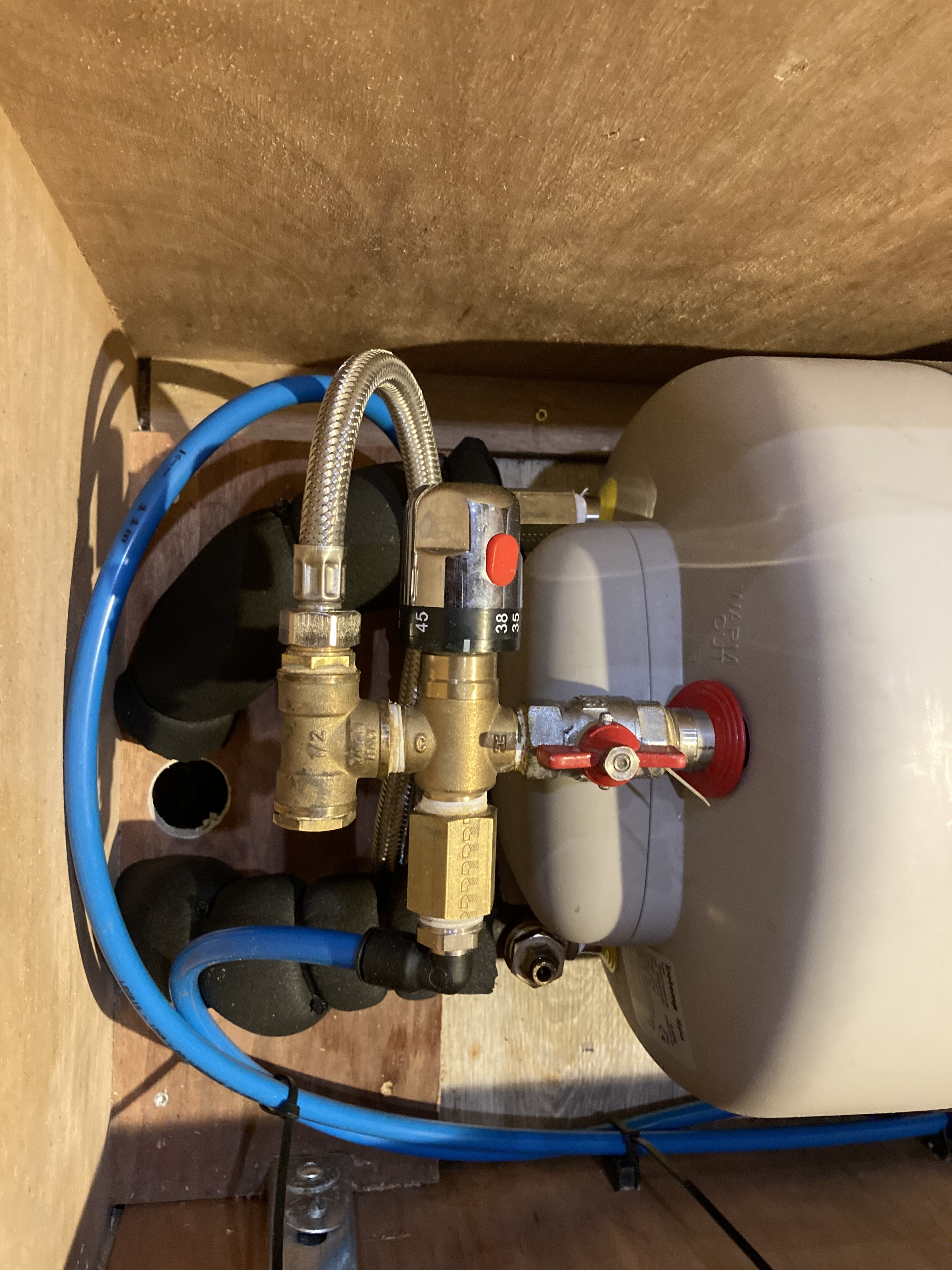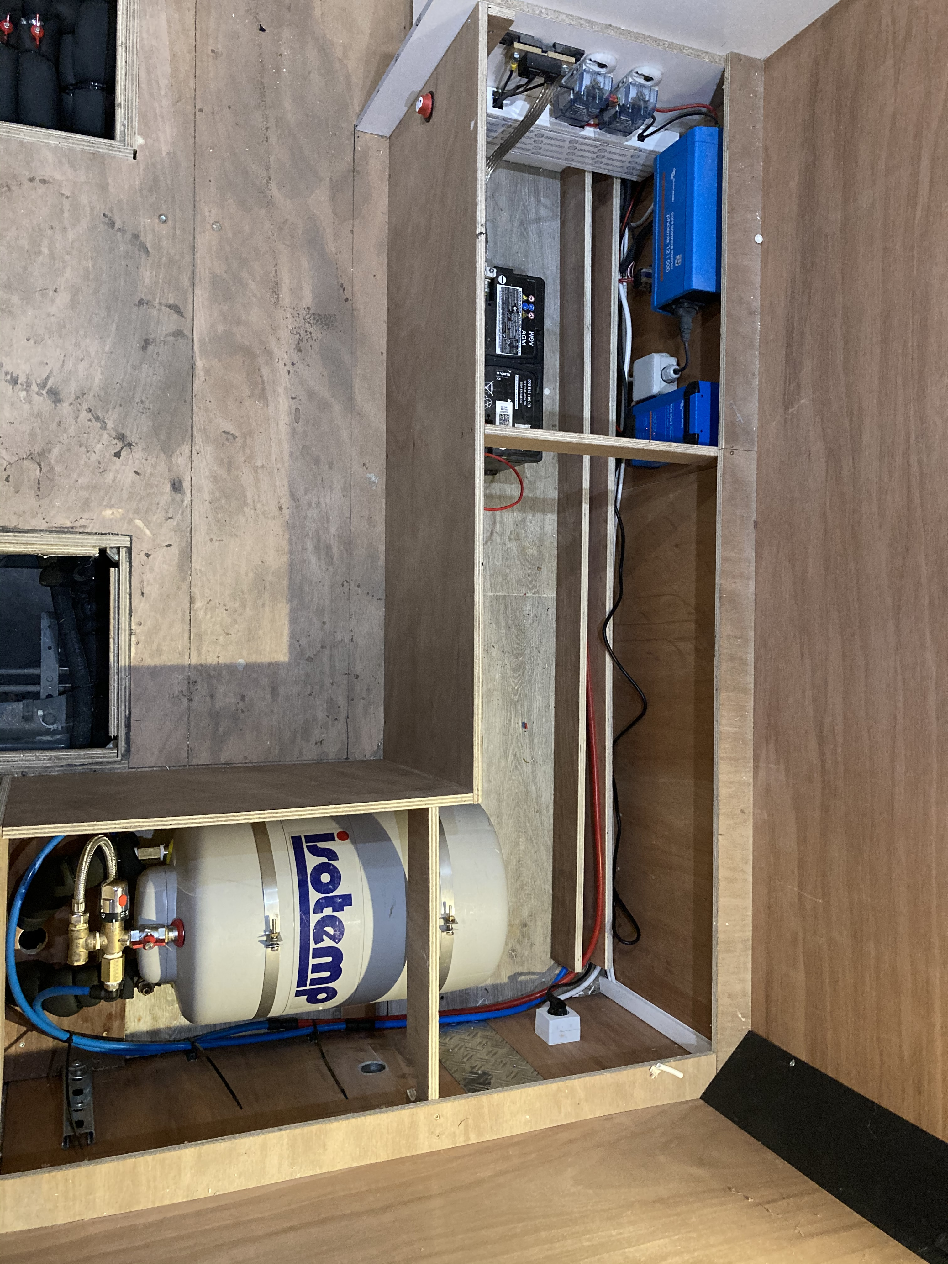 En ce qui concerne Le chauffe eau , disons que pour ma part j ai privilégié le tout en un ,gasoil , comme sur les bateaux , boiler , chauffage aérotherme et chauffage moteur . System éprouvé dans des cas extrêmes .