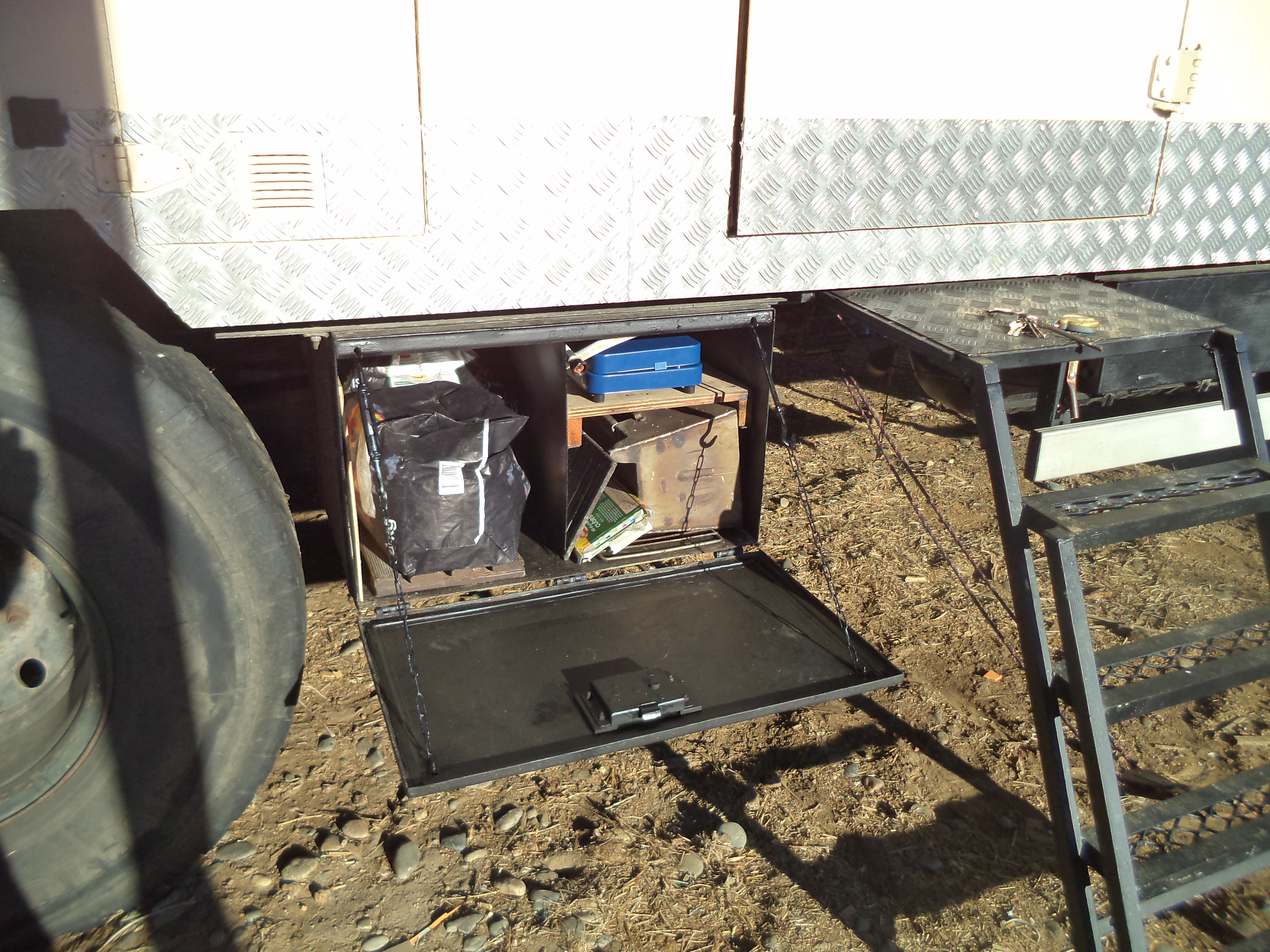 voici les dernières photos de l'aménagement. Comme dit plus haut, il nous fallait une cuisine d'été avec vue sur le monde. Je l'ai casée dans le coffre à côté de l'escalier sous les bouteilles de gaz. Un petit réchaud raccordé aux bouteilles en passant par une vanne. photos