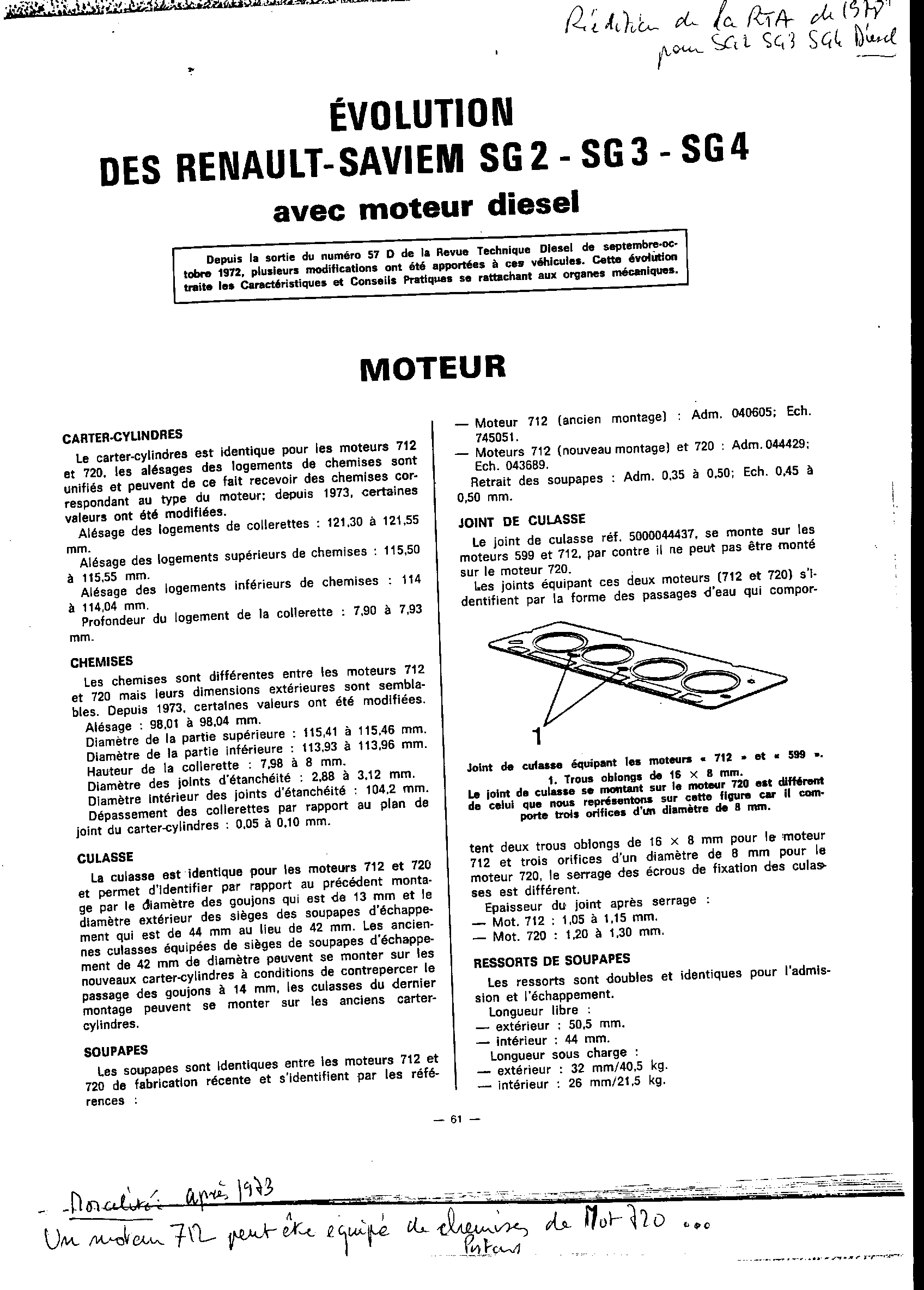 -Les blocs moteurs 712 et 720 sont les mêmes, seules les chemises amovibles sont différentes, normal puisque alésage différent. Notes à ce propos qu'il va falloir t'assurer avant de remonter que les chemises n'ont pas bougé...risque de passage du liquide de refroidissement dans le circuit d'huile via le bas moteur. (j'ai donné dans une vie ancienne, putain de R14!!!!)