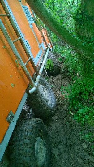 On dirait pas comme ça mais le terrain est détrempé, je suis en bord de rivière, il vient de pleuvoir pendant un mois ... et j'ai des pneus slicks à l'arriére ça aide pas ... vivement que je monte les 12x20 tous neufs :twisted: