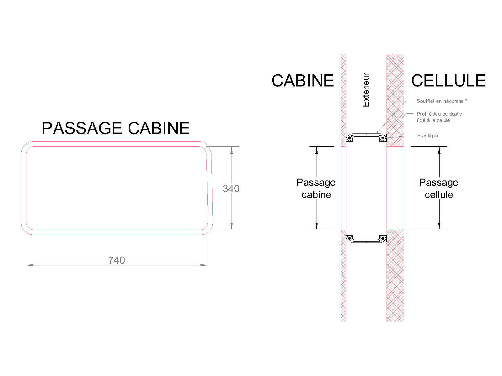 J'ai creusé un peu pour faire le soufflet de raccord extérieur entre la cabine et la cellule. Il faut qu'il soit souple et élastique (croisement de ponts), facile à enlever (pour pouvoir lever la cabine), étanche et isolant.