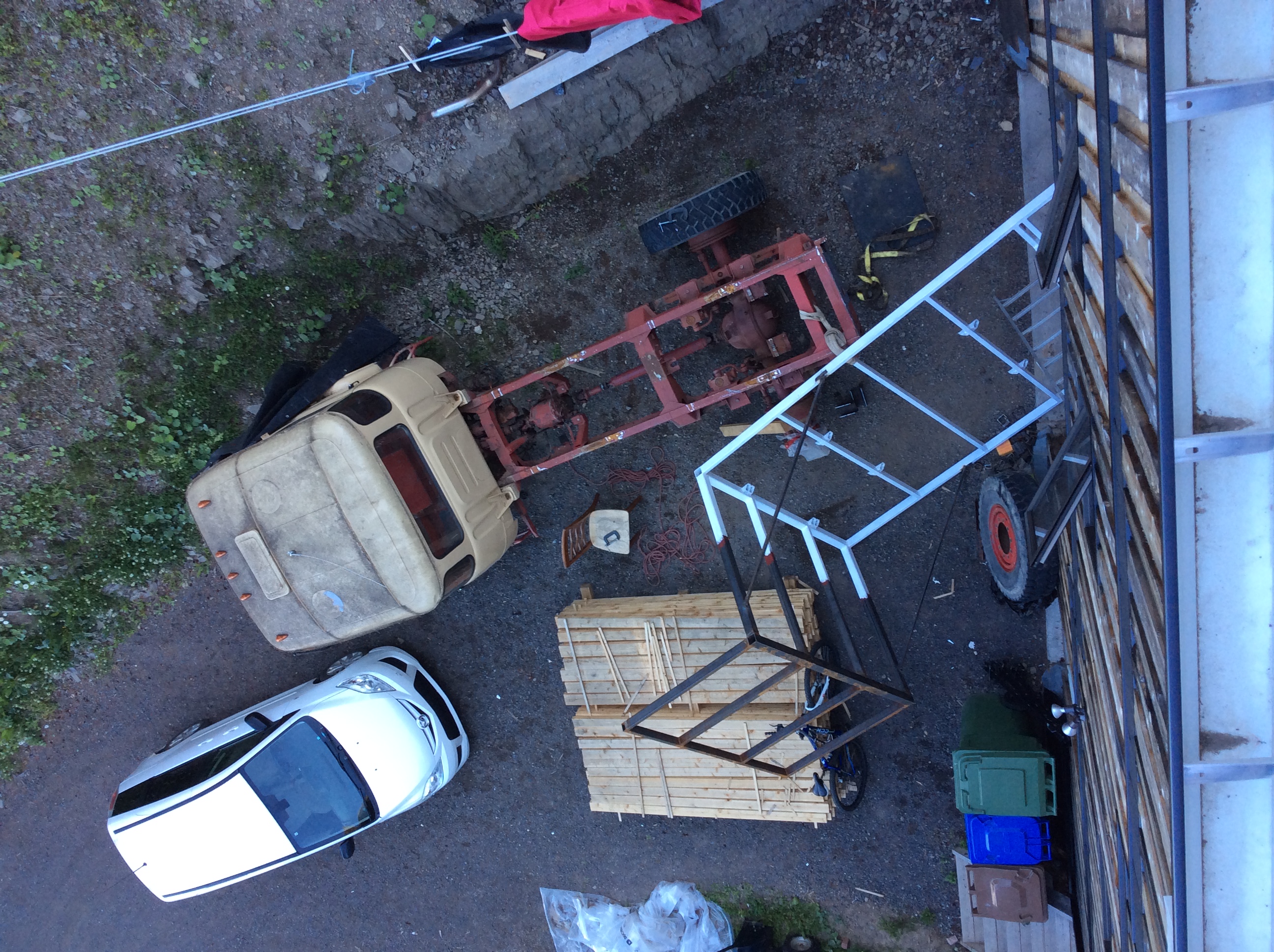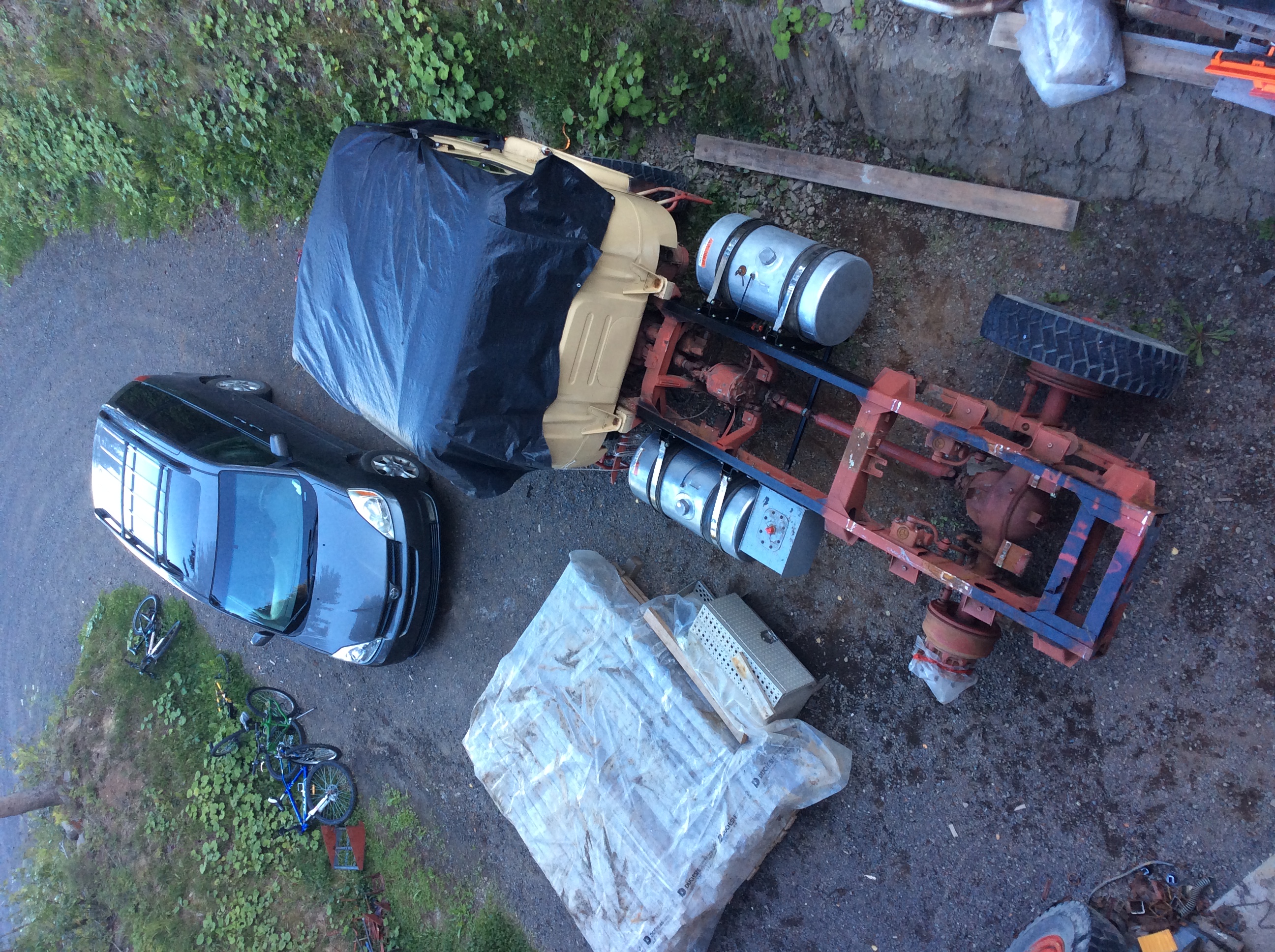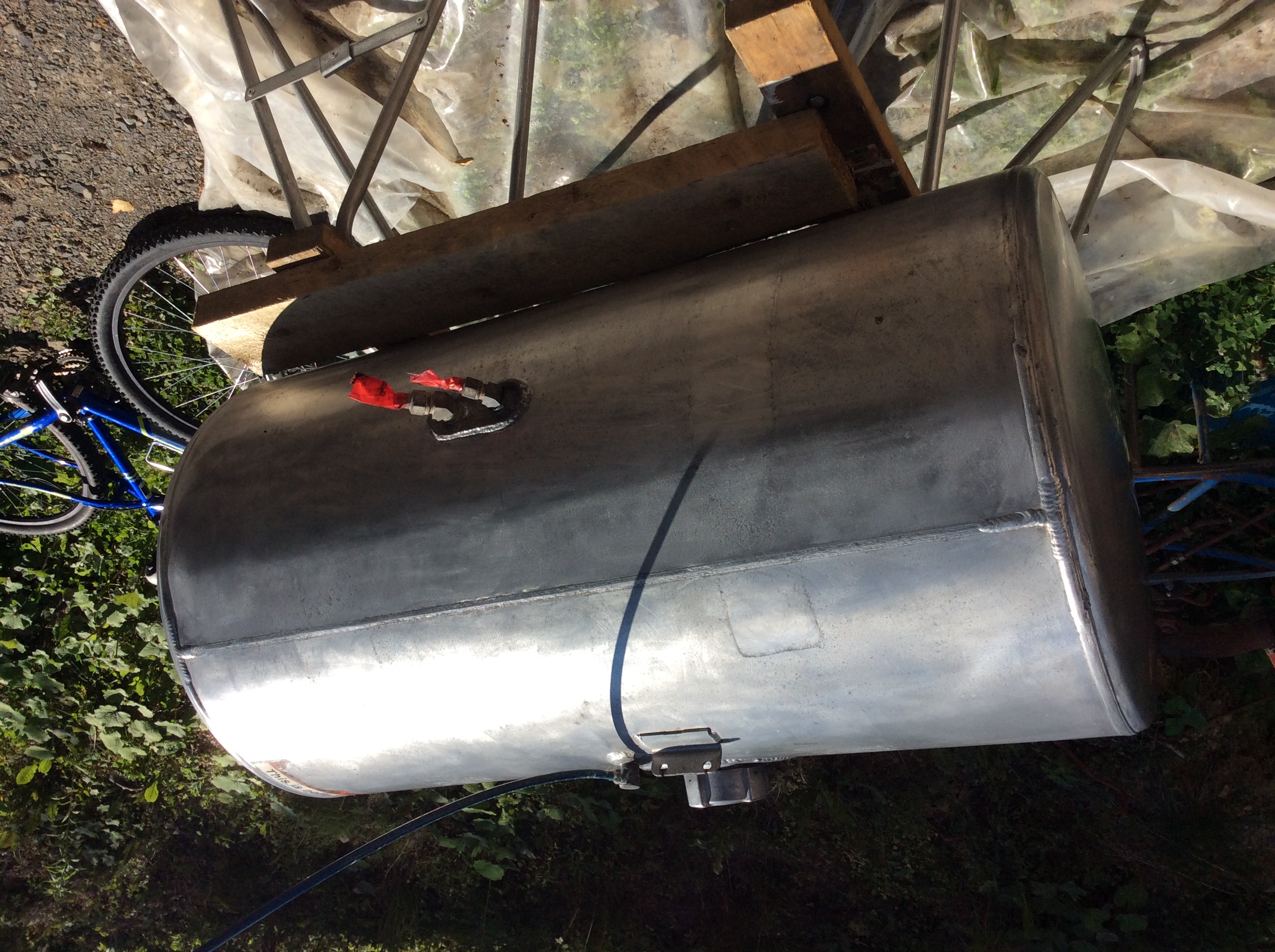 On profite du temps clément pour faire avancer le camion qui,passera le prochain hiver dehors. Vieux réservoir de fuel à retaper.