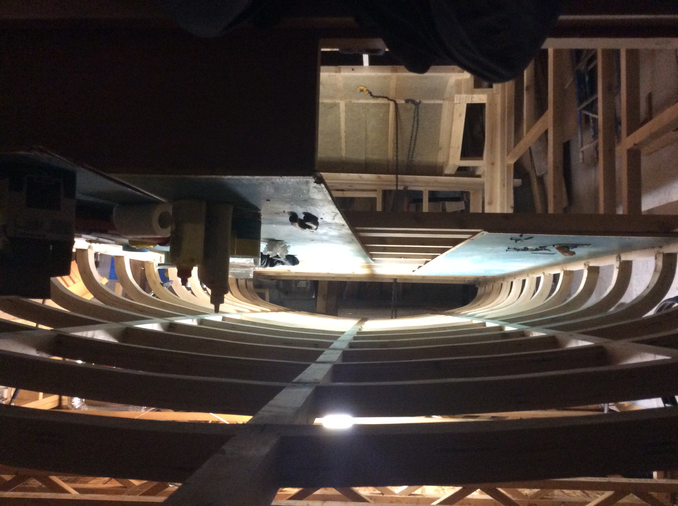 Les réservoirs seront attachés sous ce support. Ils sont à l'envers sur cette photo, c'était pour vérifier les distances des attaches l'une par rapport à l'autre.