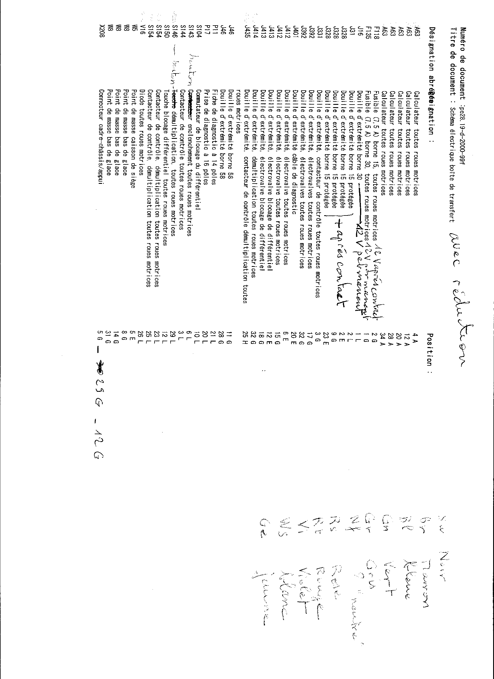 " V16 toute roues motrices " Ou se trouve cette diode - non lumineuse - ? sur le schéma elle n'est pas dans le contacteur . Pour " J435 " , même question , comment la retrouver ?