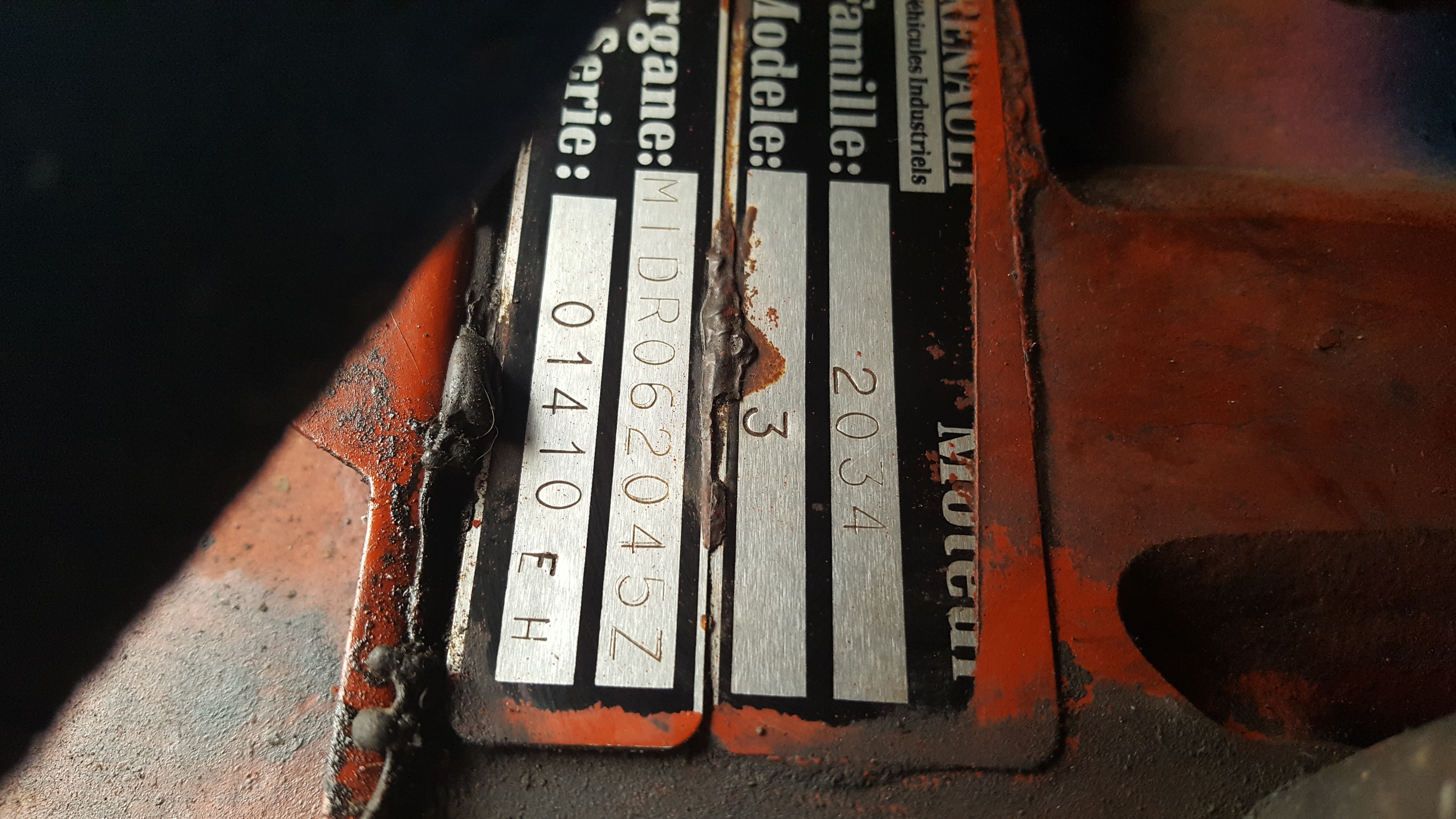 Malheureusement la plaque d'identification de la boîte de vitesse est absente