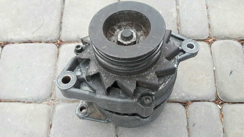 Les tofs de l'ancien alternateur, il doit avoir 42 ans.... :mrgreen: ...En fait on dirait bien que les poulies sont les mêmes, on n'a même pas eu l'idée de les mettre les deux l'un à côté de l'autre... Mouhaha ....Va falloir qu'on y remédie..... :( :mrgreen: