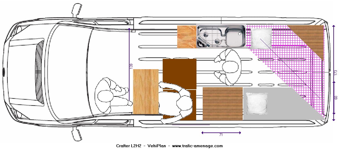 PS: tu as pensé aux rangements? Ca va vite à 5 + matériel 4x4 + camping. C'est intéressant de lister le volume avant de commencer les plans, surtout que sur un sprinter il n'y a pas de coffres possibles sur le châssis comme sur le cabstar.