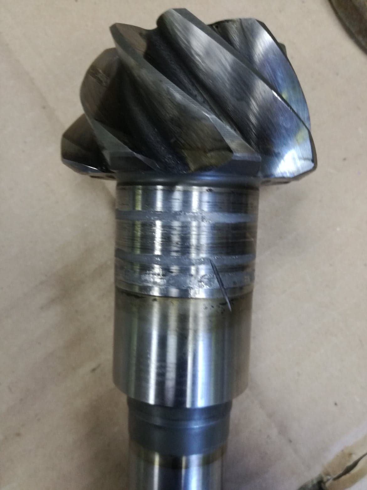 Ton arbre de pignon conique est mal en point , tu peut penser à une recharge de matière puis ré-usinage à la côte d'origine si les dents du pignon sont correctes . J'ai déjà fait faire après diminution du diamètre par usinage , un chromage dur ( épais ) sur un palier de vilebrequin puis rectification à la cote .